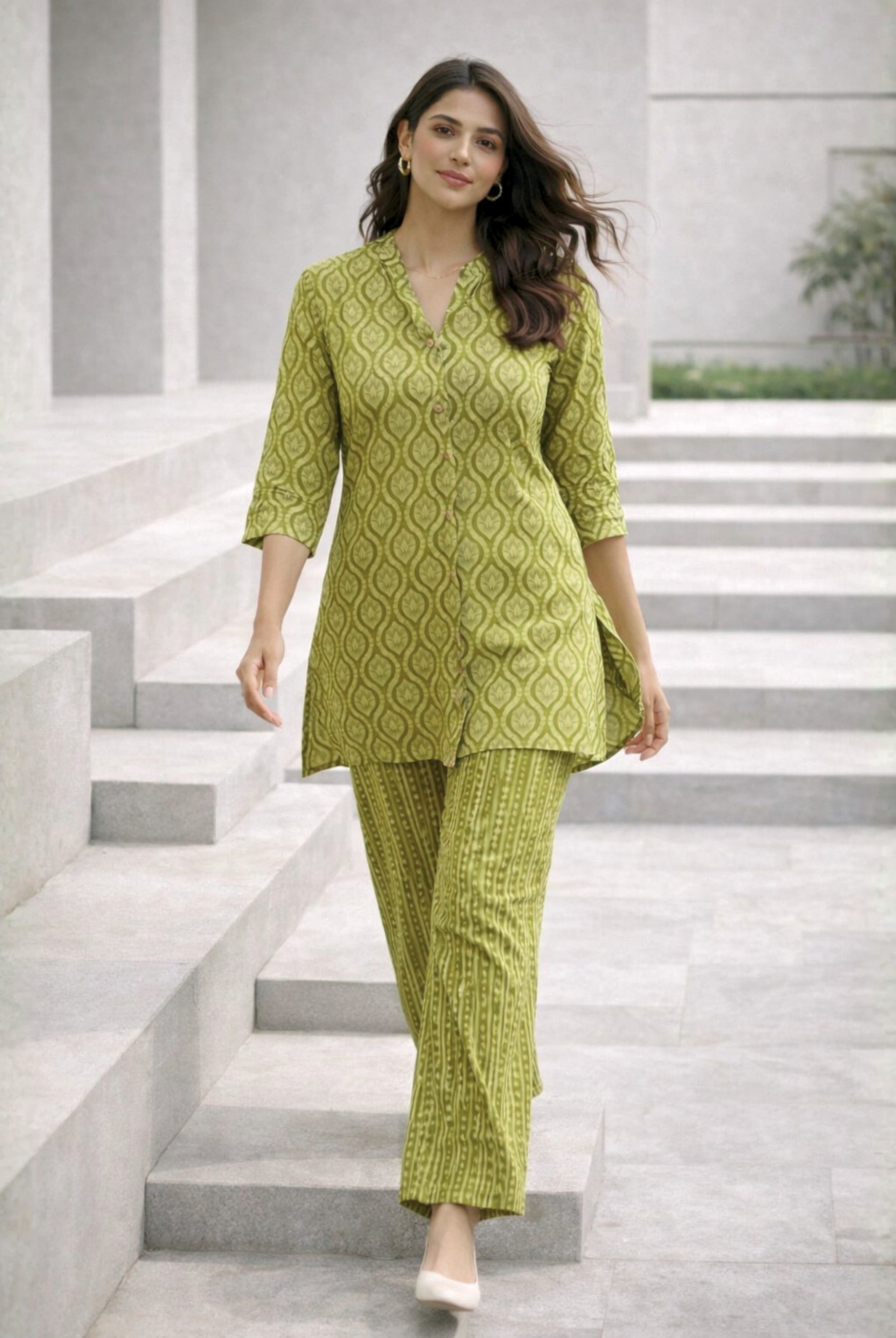 Explore the latest cotton co-ord sets — perfect for work, travel & everyday wear.