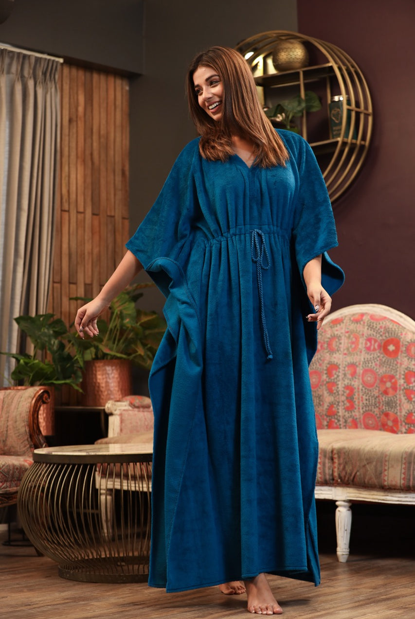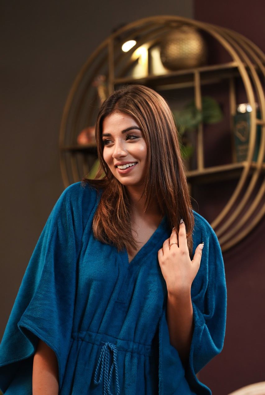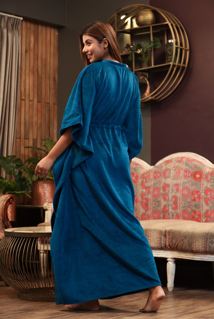 Transform your nights with our Teal Breezy Boho Pure Cotton V neck Sleepwear Robe Set. Made with pure cotton, it's comfortable, breezy, and perfect for any season. The gorgeous teal color and boho design add a touch of elegance to your bedtime routine. Indulge in pure comfort with this must-have set.