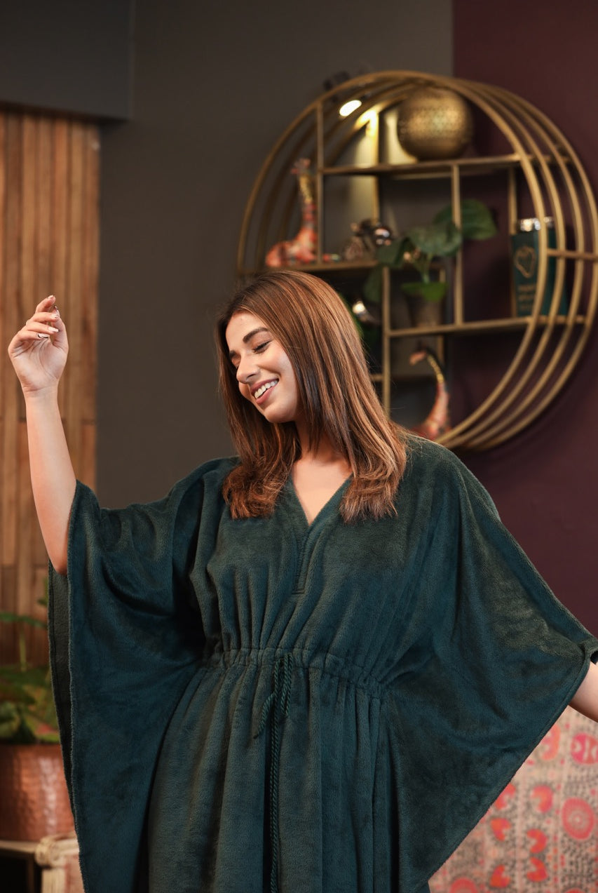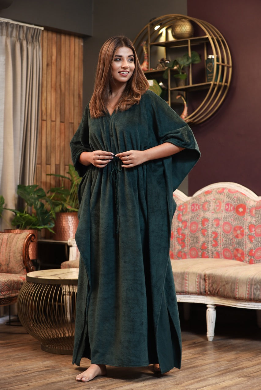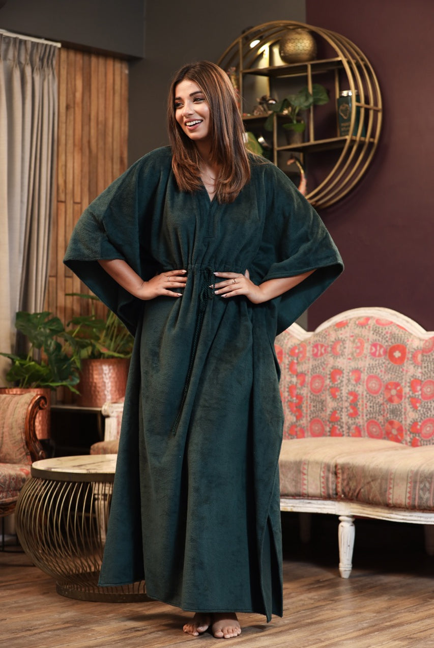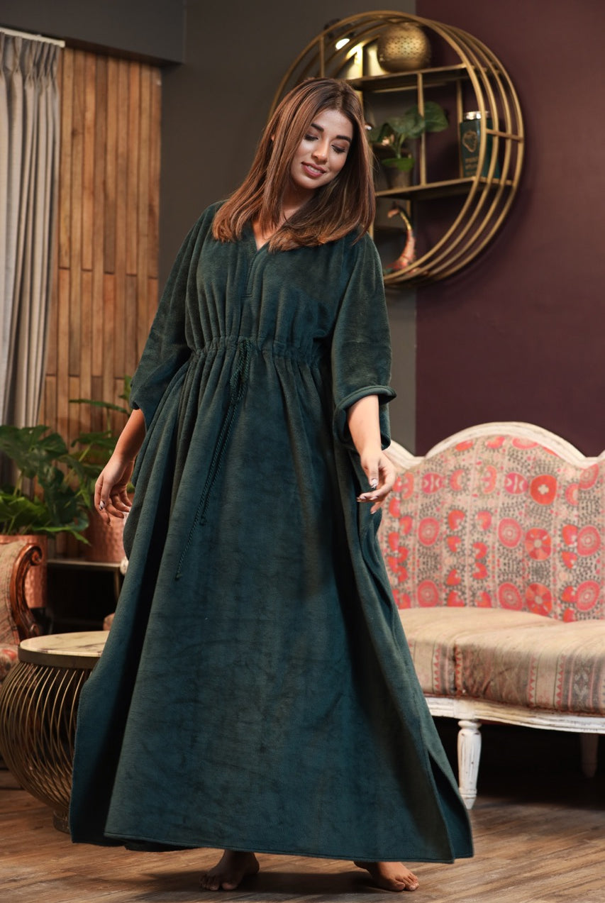 Transform your nights with our Teal Breezy Boho Pure Cotton V neck Sleepwear Robe Set. Made with pure cotton, it's comfortable, breezy, and perfect for any season. The gorgeous teal color and boho design add a touch of elegance to your bedtime routine. Indulge in pure comfort with this must-have set.