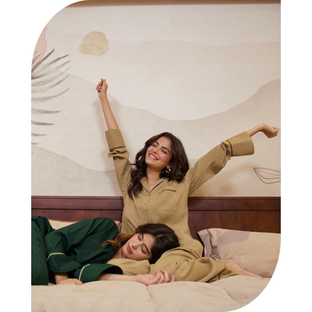 Our sleepwear blends effortless style with ultimate comfort, designed to make every night restful and every morning refreshing. Crafted from soft, breathable fabrics and tailored with care, each piece feels like a hug you never want to take off. Discover nightwear that looks as good as it feels.
