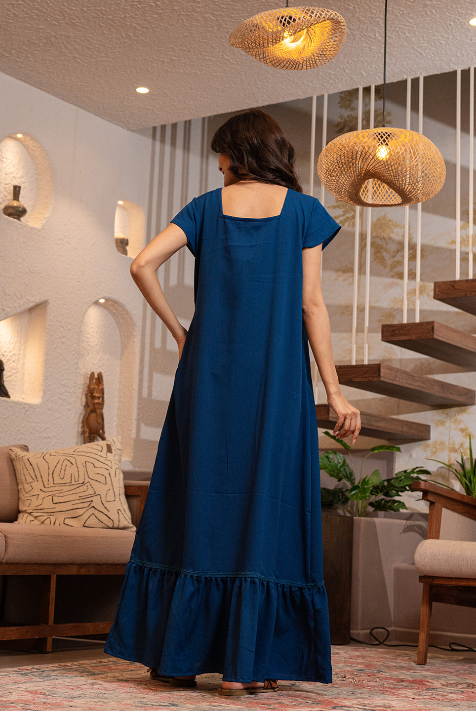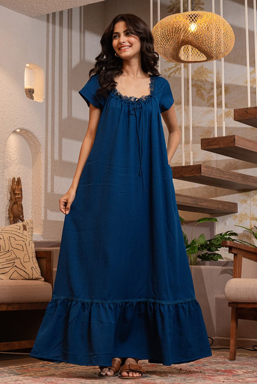 Transform your nights with our Teal Breezy Boho Pure Cotton V neck Sleepwear Robe Set. Made with pure cotton, it's comfortable, breezy, and perfect for any season. The gorgeous teal color and boho design add a touch of elegance to your bedtime routine. Indulge in pure comfort with this must-have set.