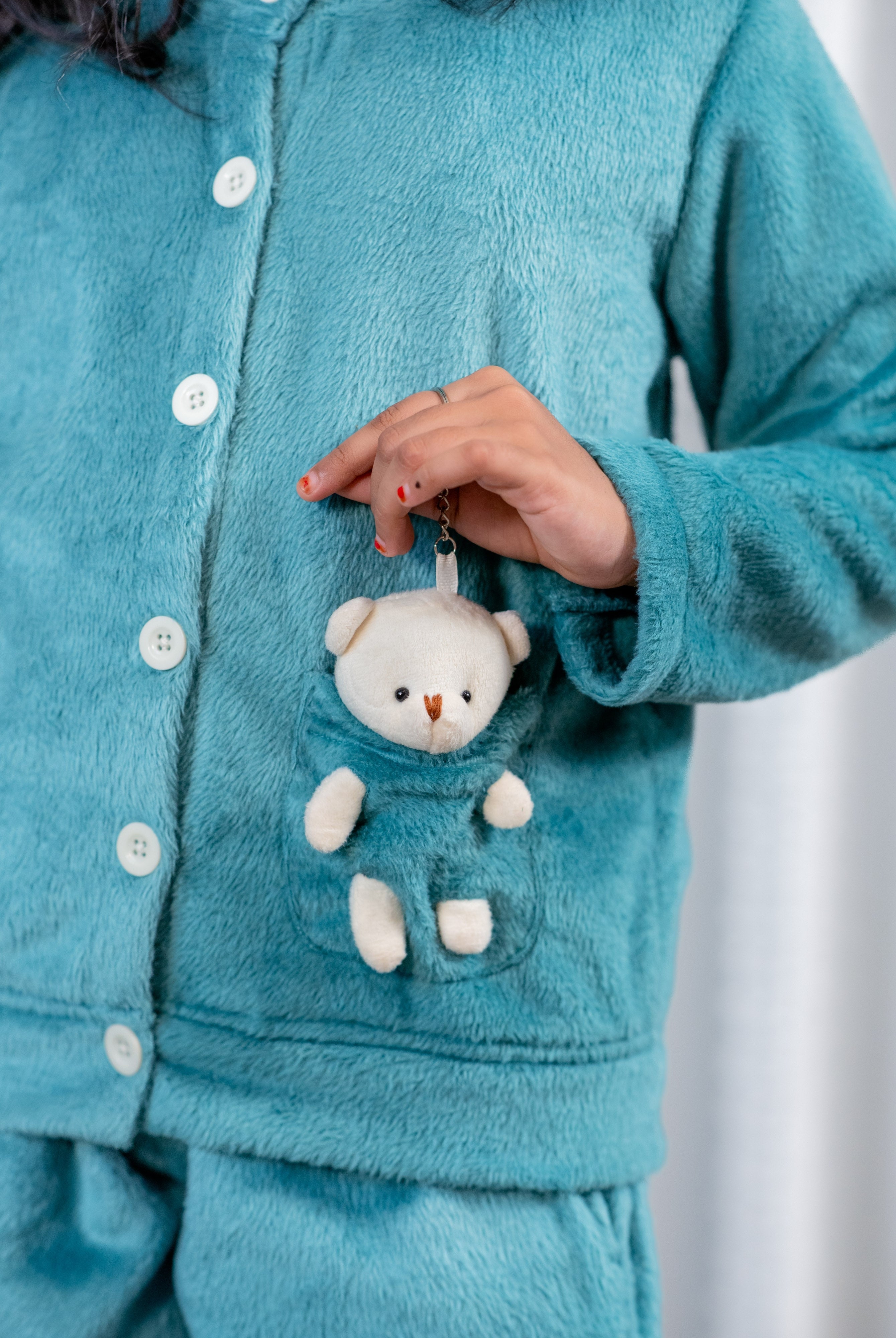 Transform your nights with our Teal Breezy Boho Pure Cotton V neck Sleepwear Robe Set. Made with pure cotton, it's comfortable, breezy, and perfect for any season. The gorgeous teal color and boho design add a touch of elegance to your bedtime routine. Indulge in pure comfort with this must-have set.