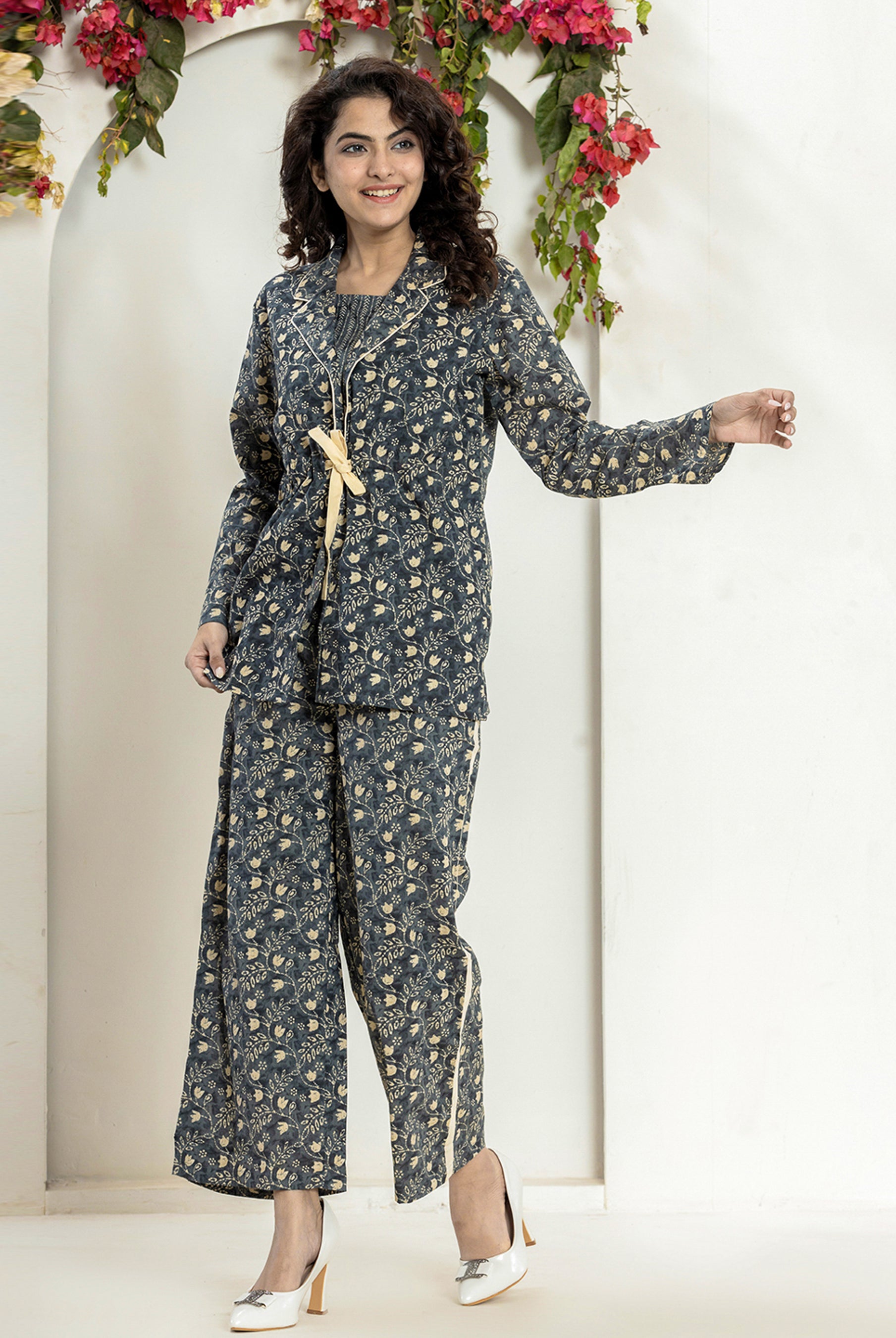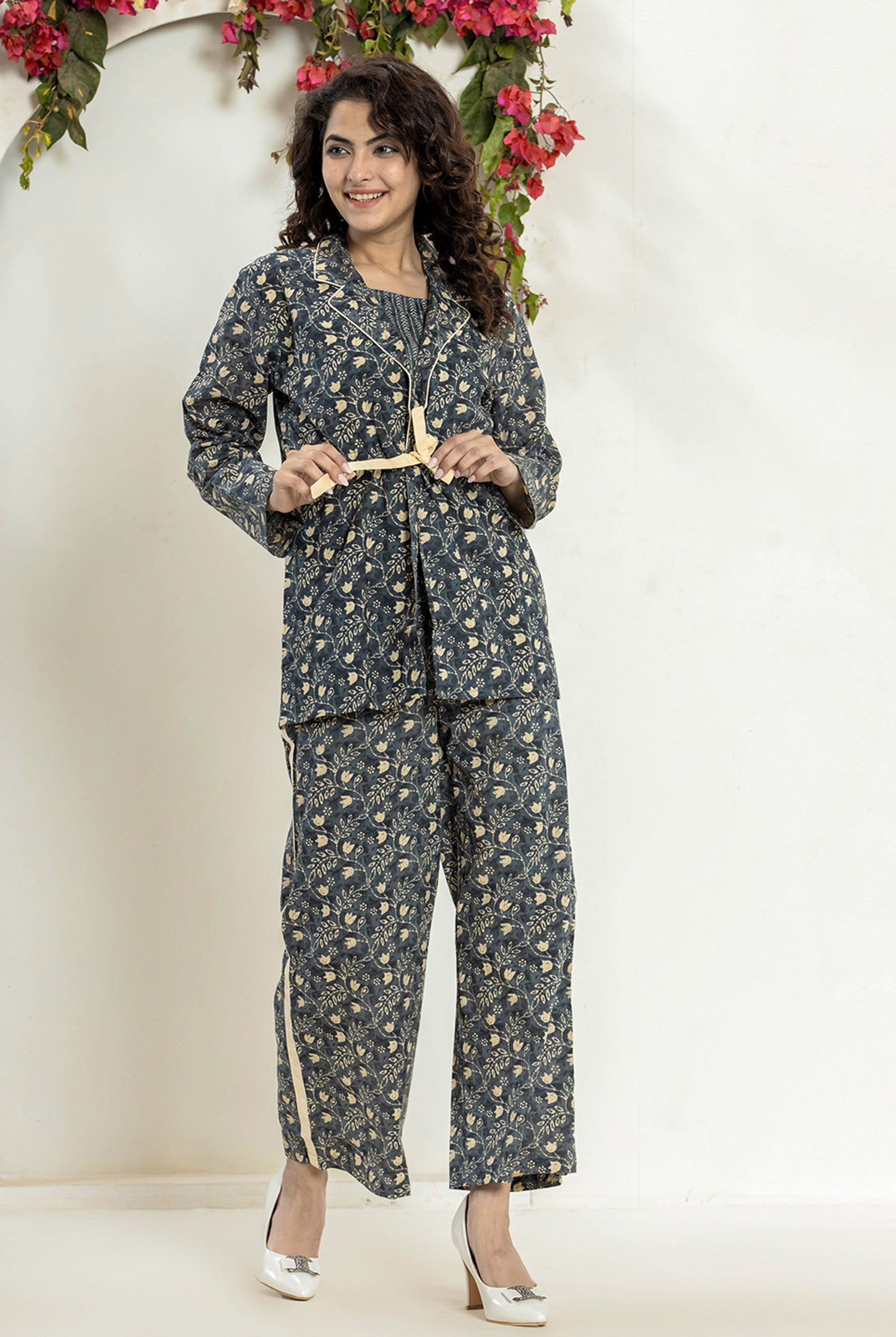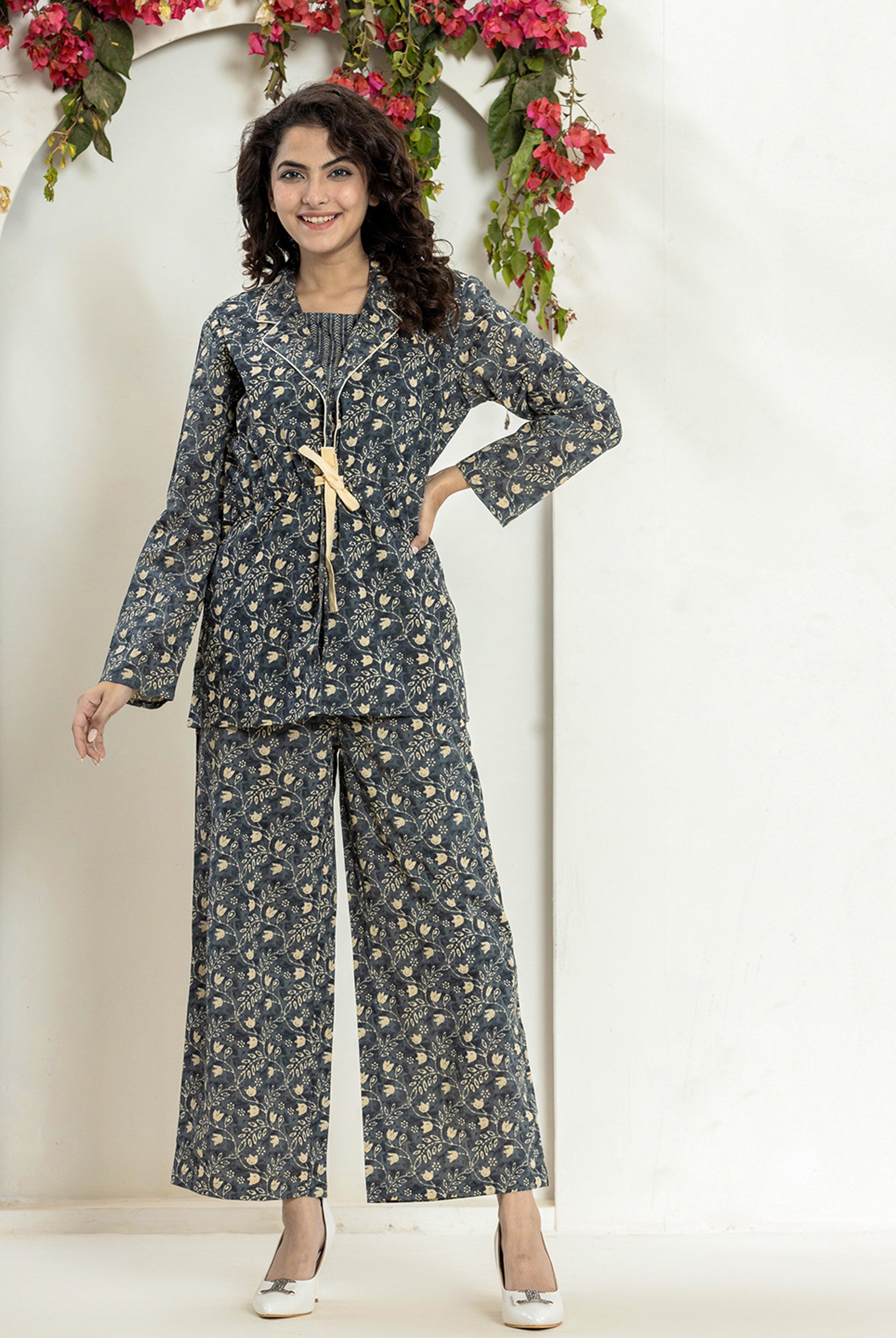 Even our basic co-ord sets in the 3-piece format carry thoughtful design details like buttoned collars, drawstring waists, or subtle embroidery. Simple doesn’t mean boring here. These sets are all about clean silhouettes and soft fabrics that do the talking.