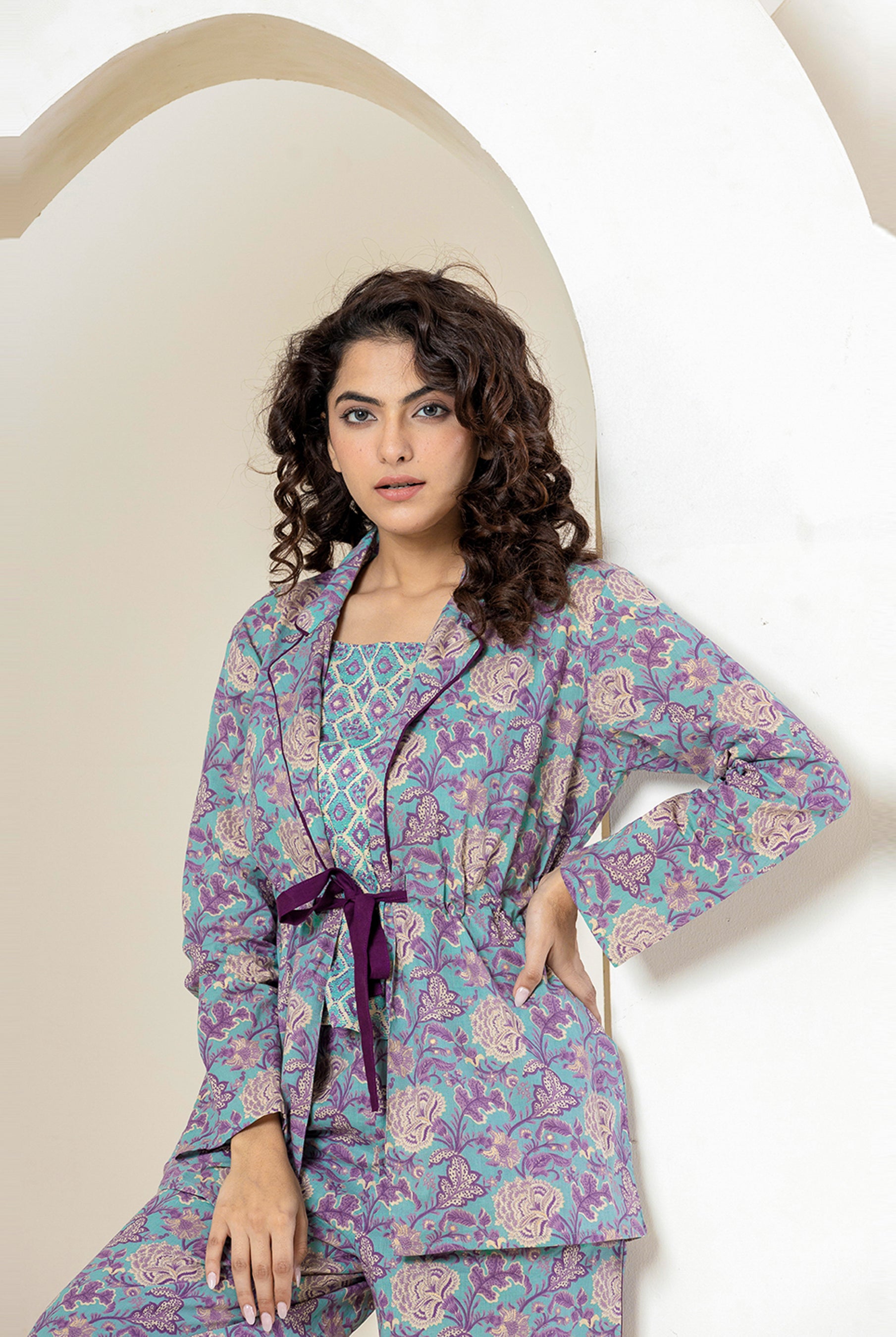Our kaftan co-ord sets included in the 3-piece lineup offer maximum comfort with flowing cuts and an easy-going aesthetic. Paired with matching bottoms and a third piece like a shrug or dupatta, they make a graceful and laid-back outfit for lounging, travel, or beachside holidays.