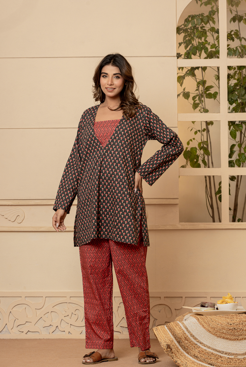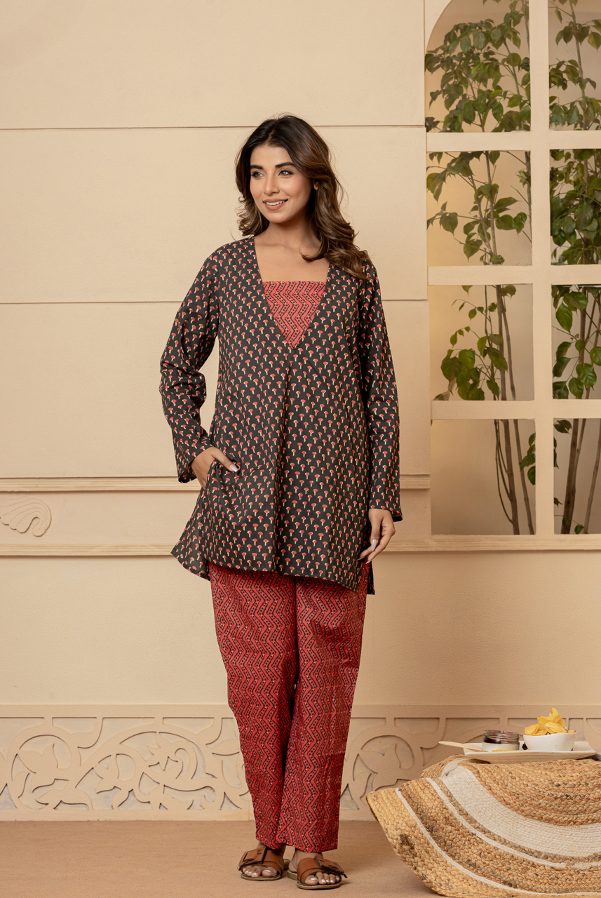 With 3-piece sets, the prints often extend across all three layers or strategically contrast for visual depth. Whether you go bold or stick to subtle patterns, these co-ord sets for women make sure you never go unnoticed.
