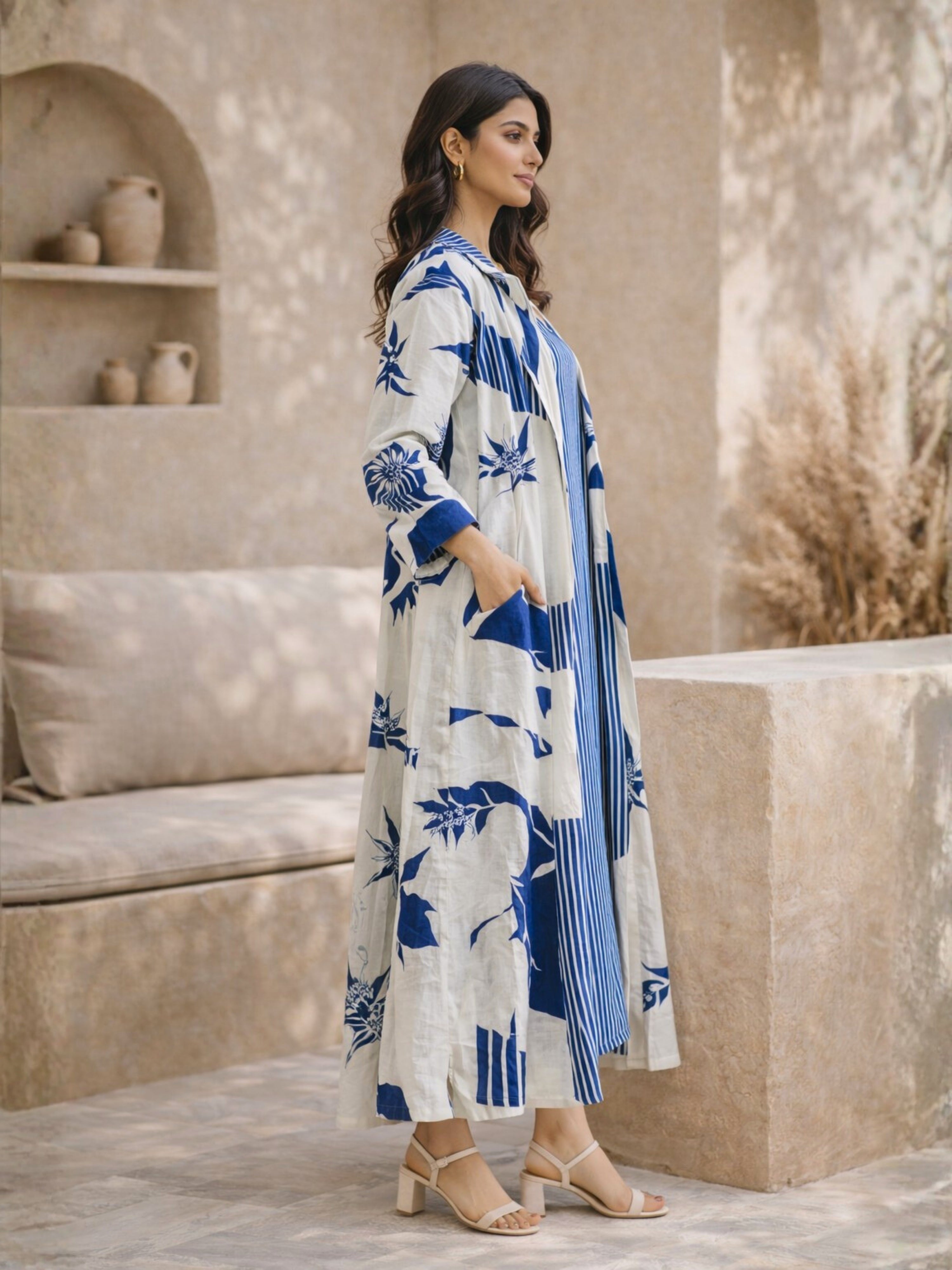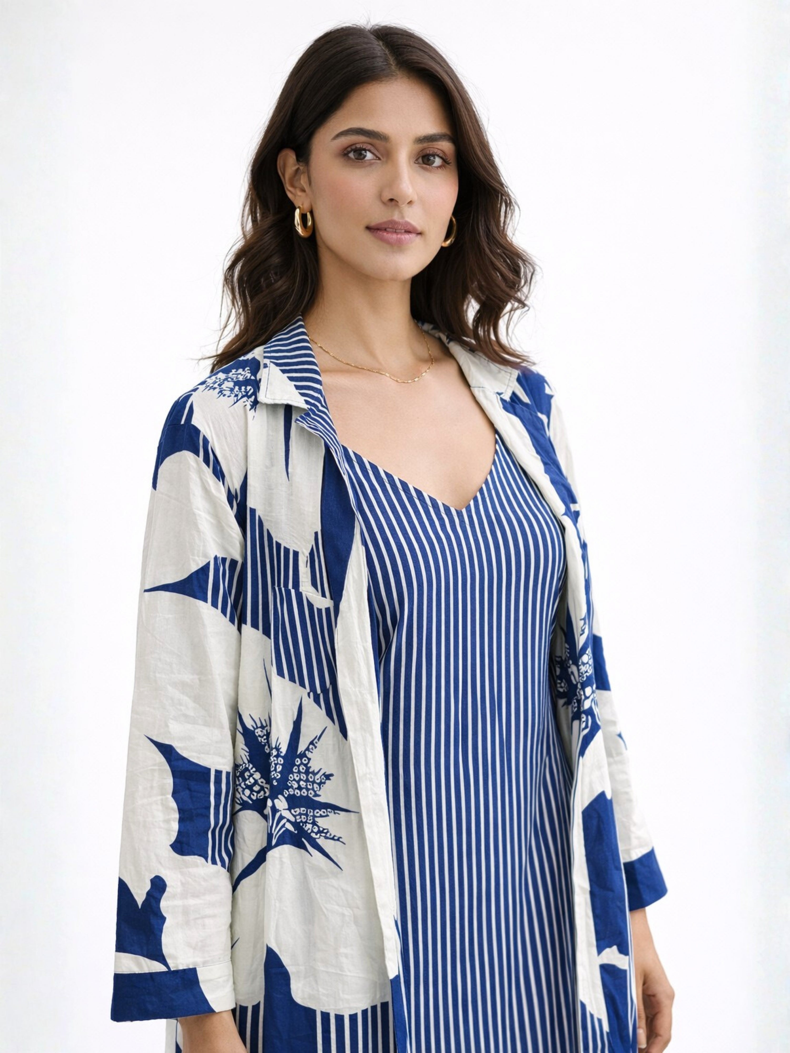 Crafted in soft, breathable cotton, this midi dress with shrug offers effortless elegance and summer comfort for everyday styling.