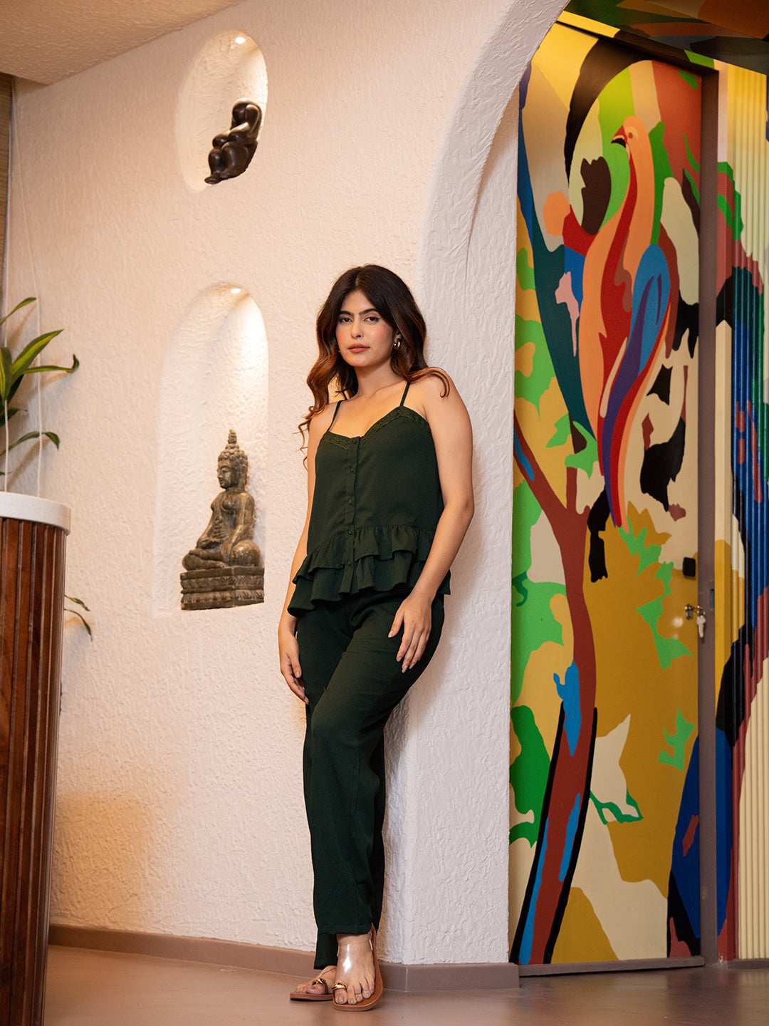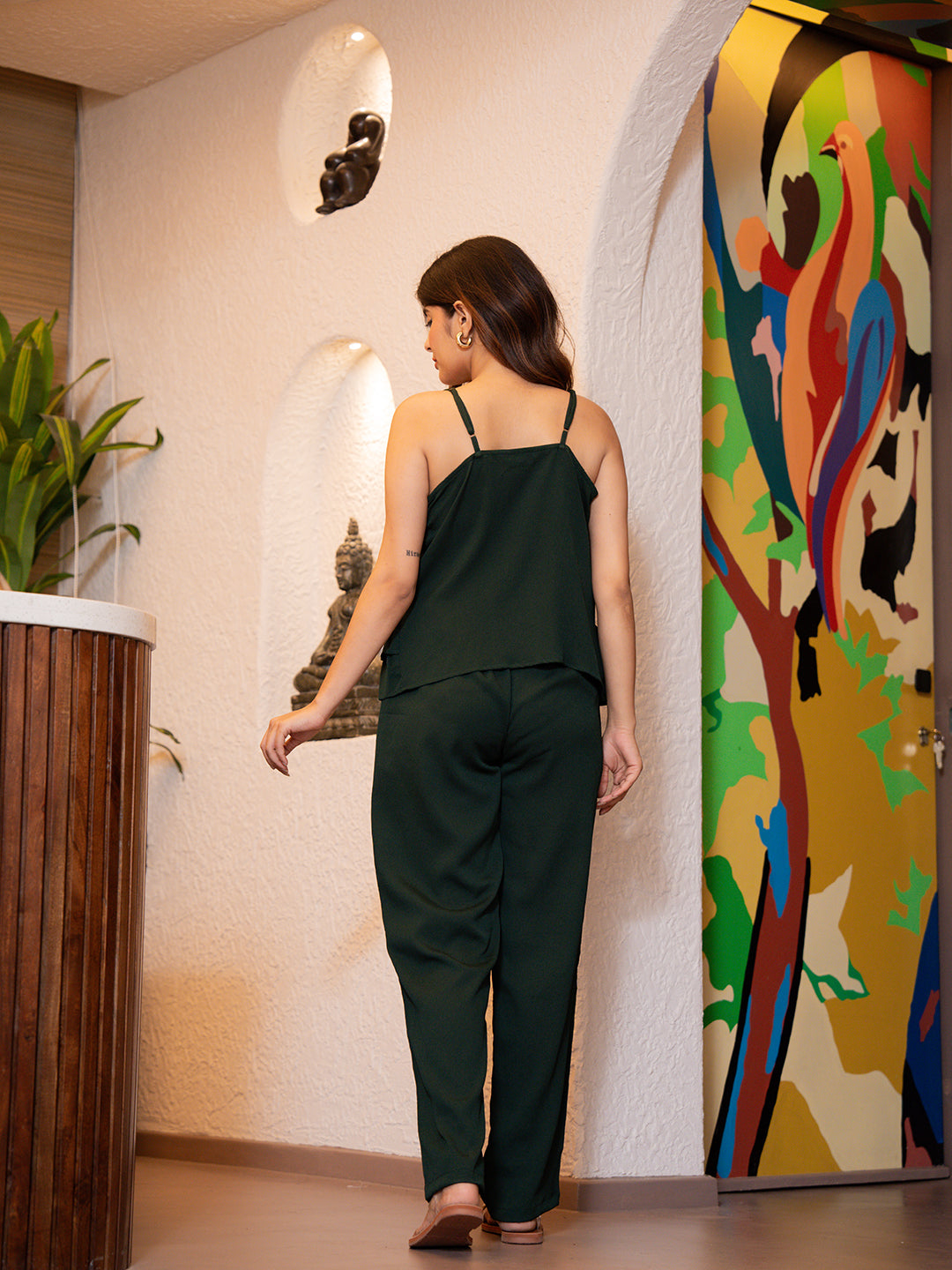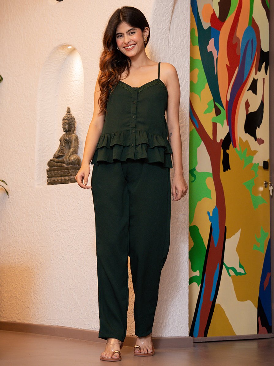 Forest Green Soft Crepe Sleeveless Co-Ord Set