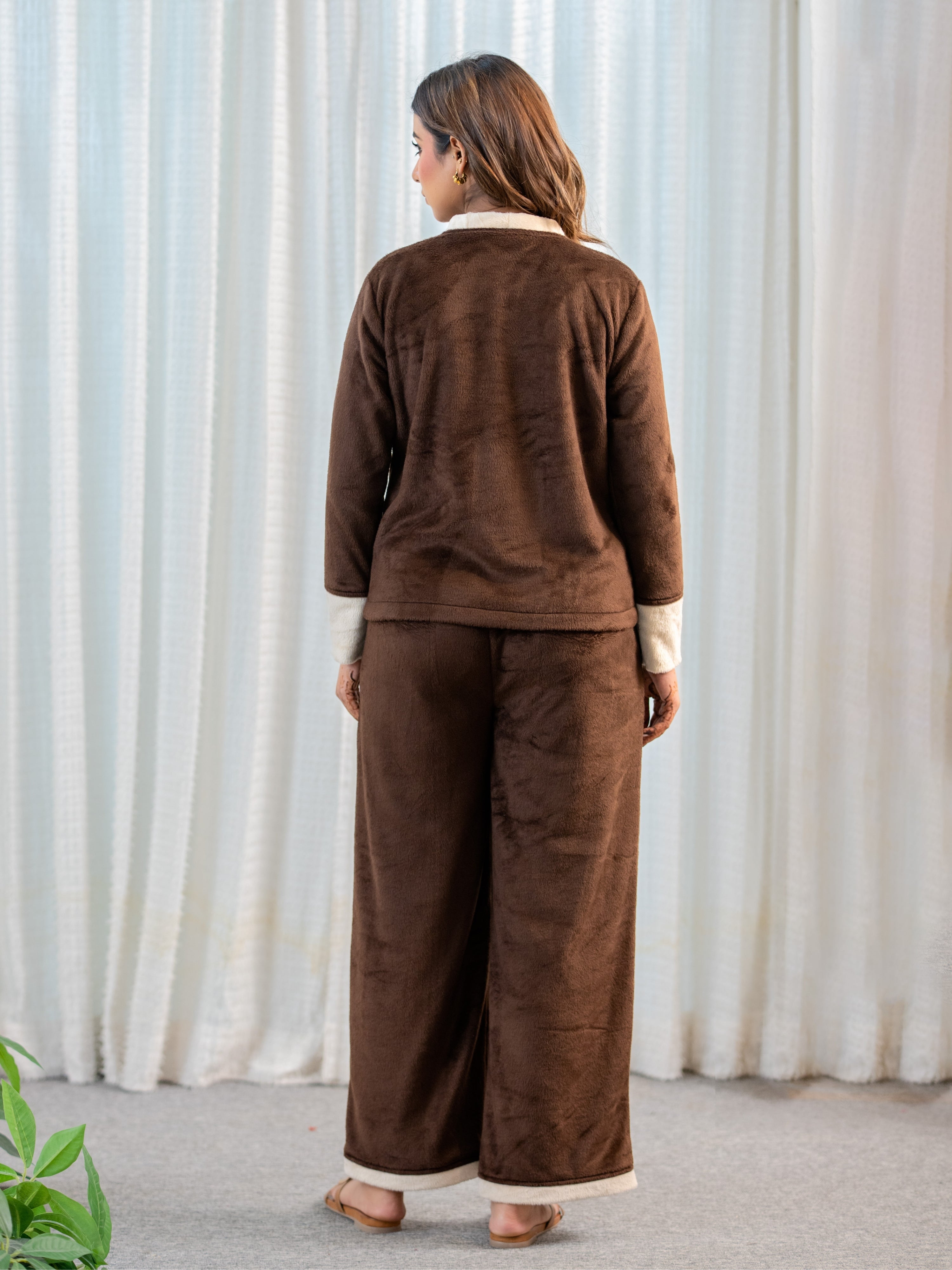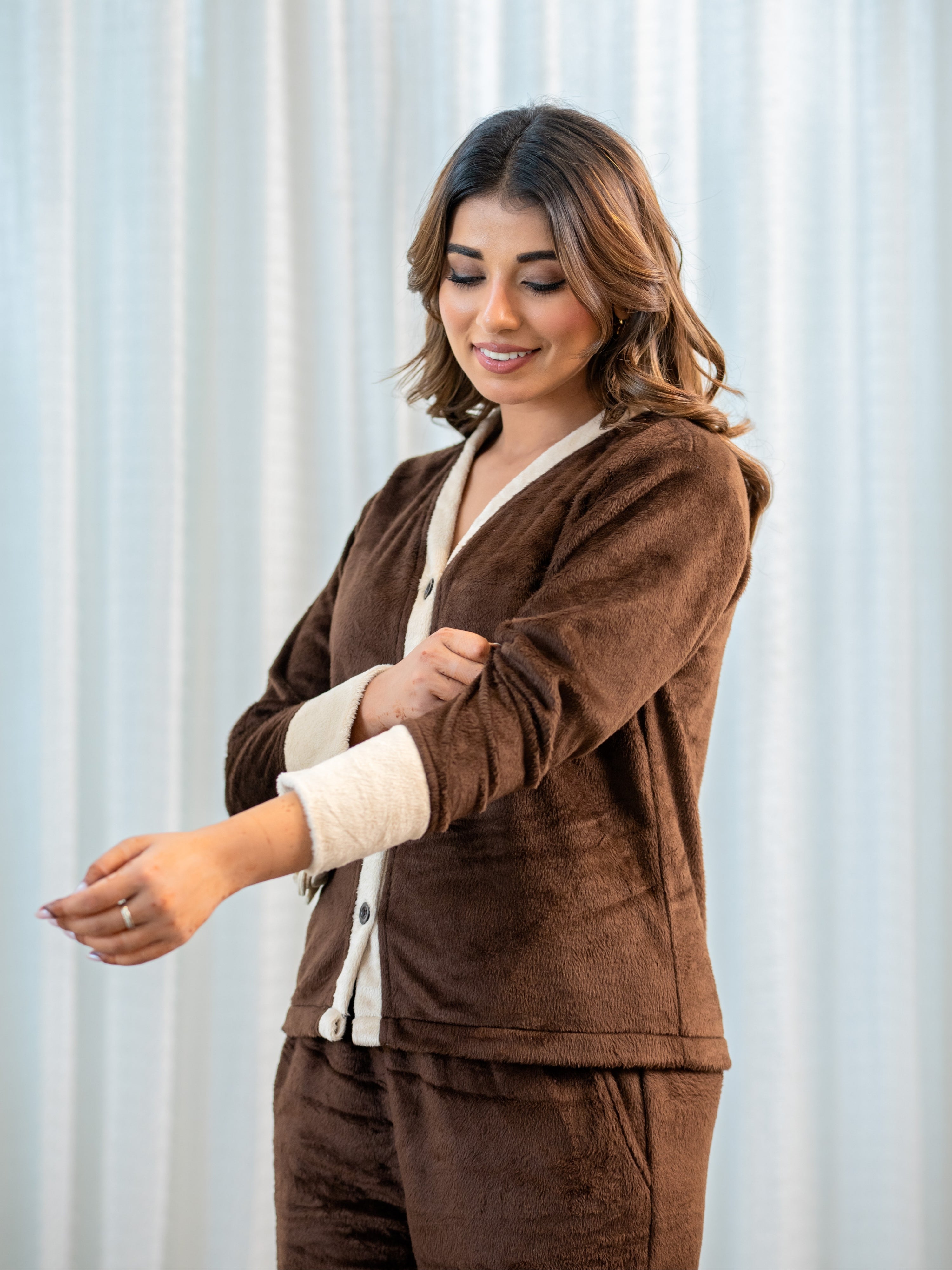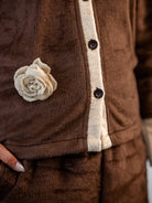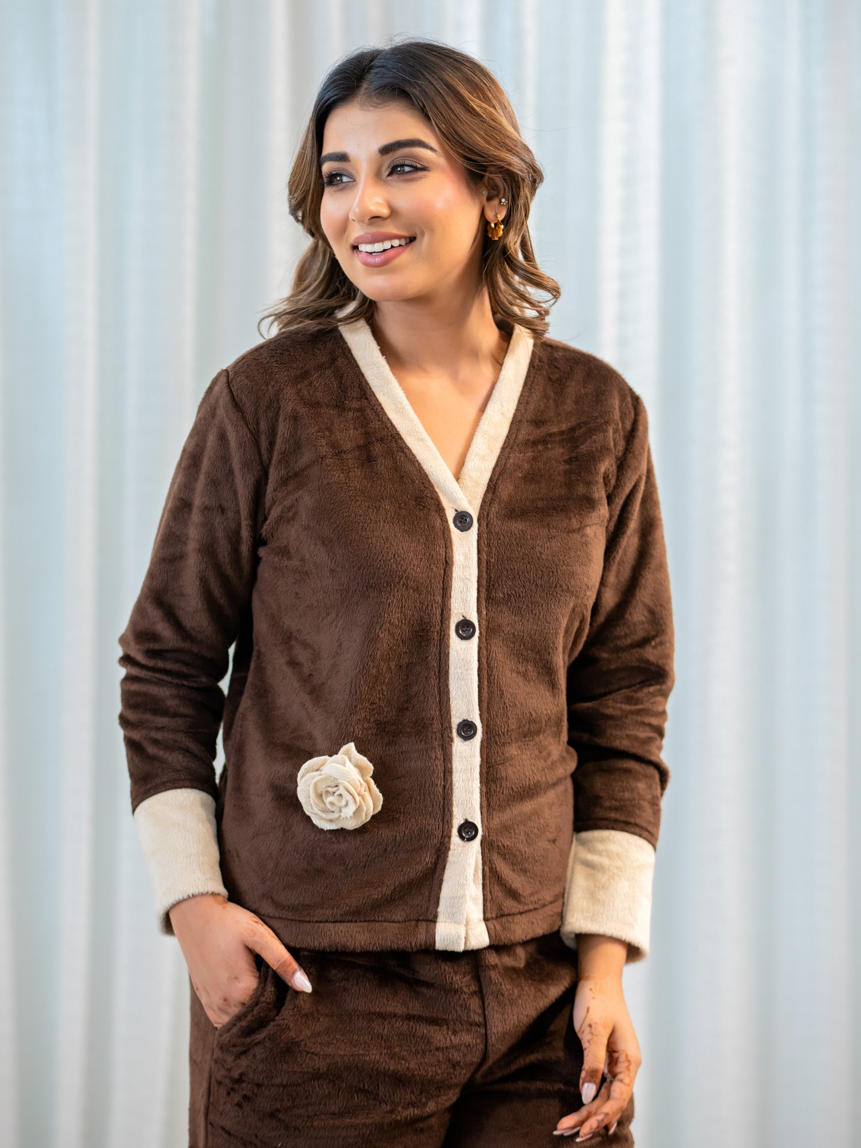 Embrace cozy elegance in this brown cardigan set that feels absolutely heavenly! The charming broach accent brings timeless sophistication while the buttery-soft wool keeps you snug and comfortable. Perfect for layering or wearing solo, this versatile piece transforms any look into pure style magic. Utterly delightful!