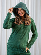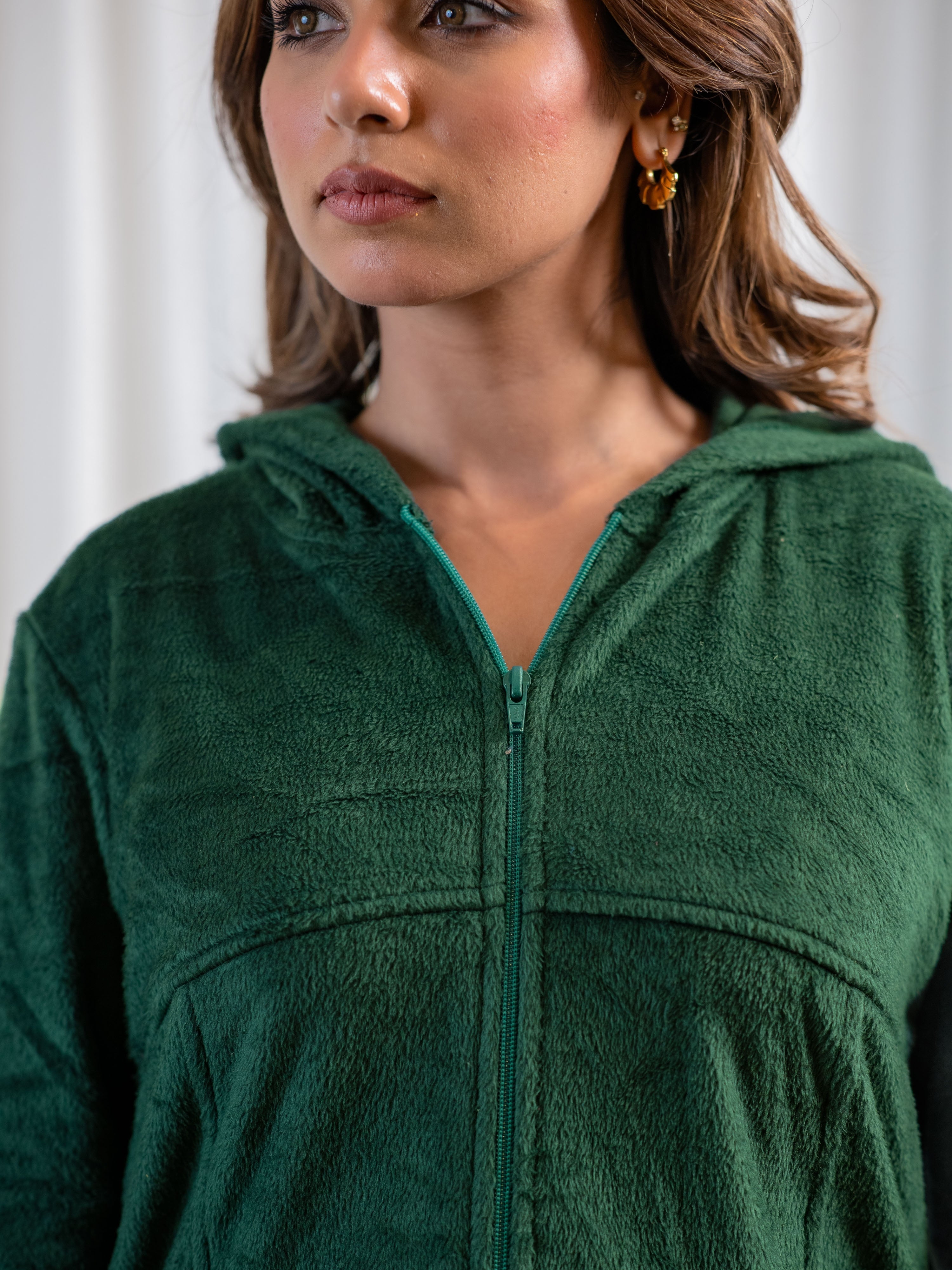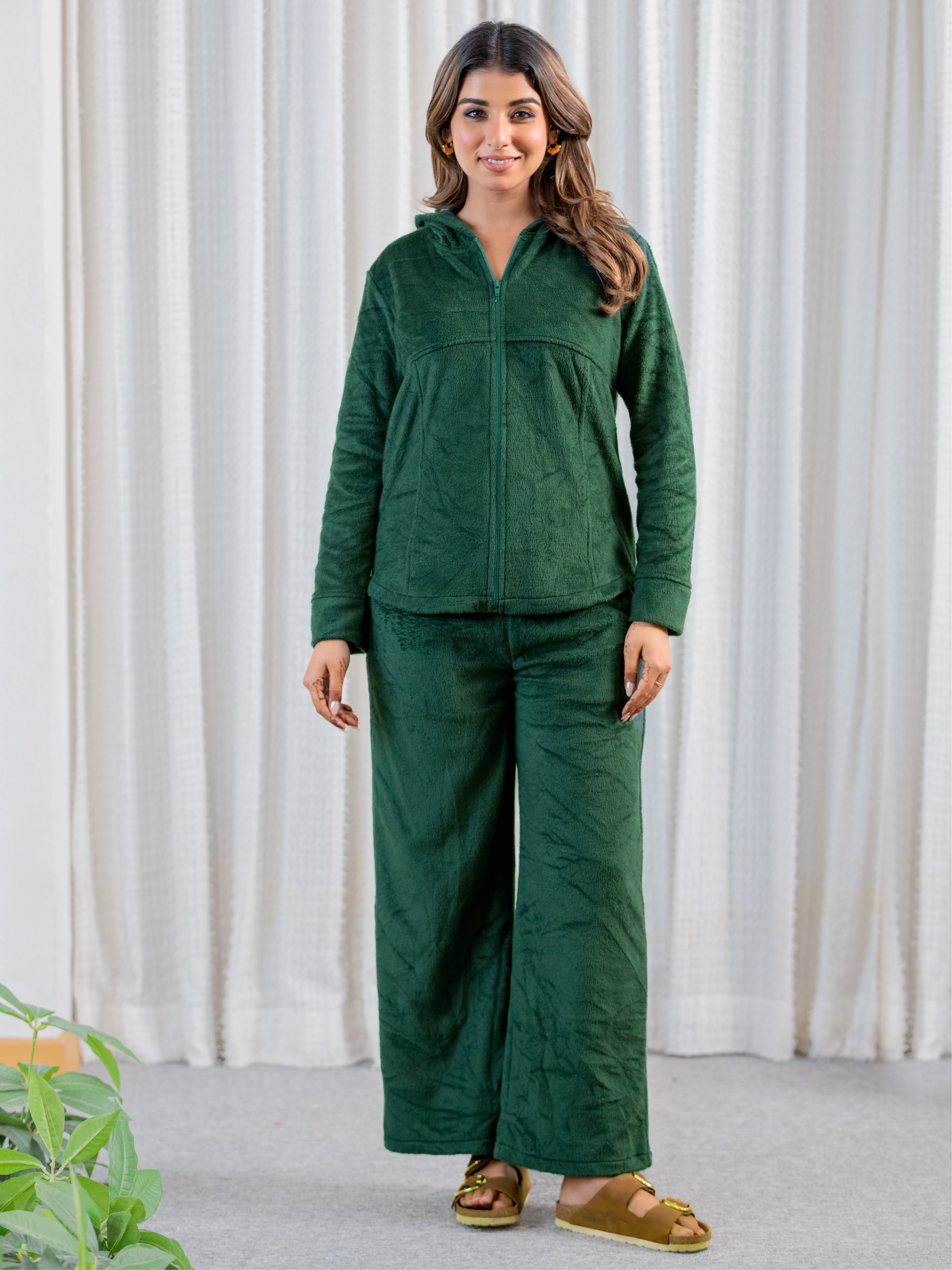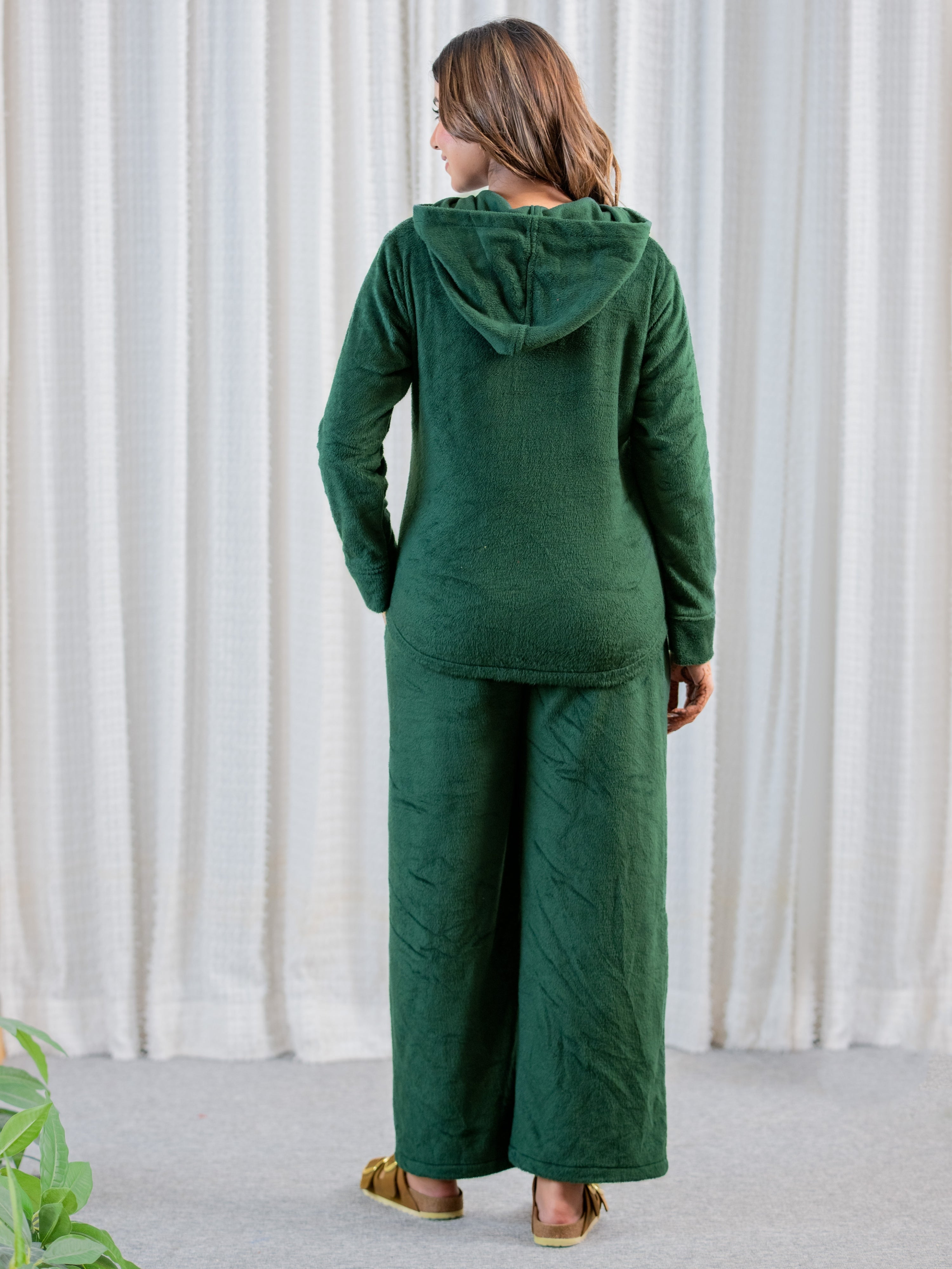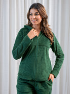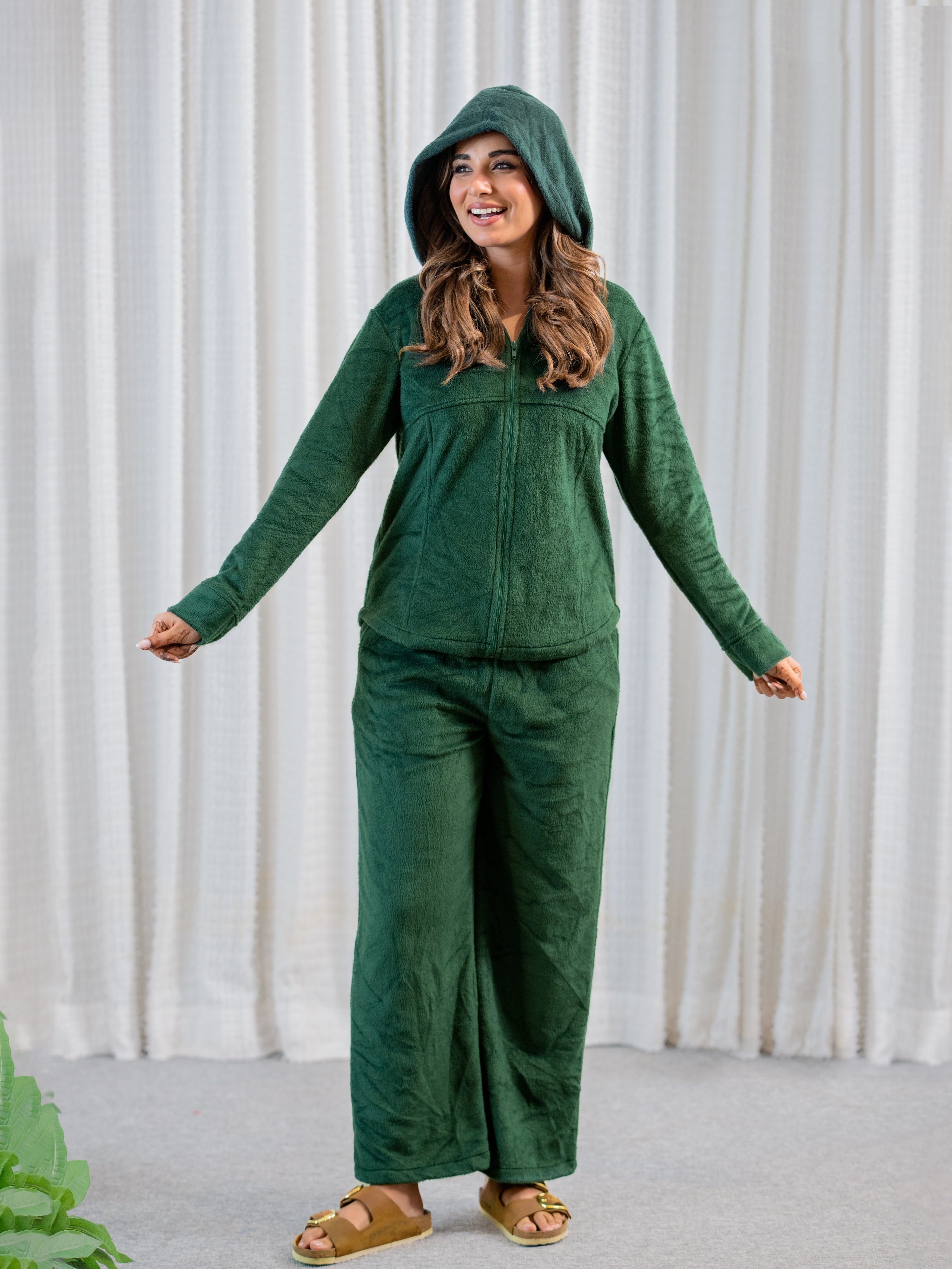 Emerald Green Super Soft Woollen Zip-Up Hoodie Sweatshirt Set