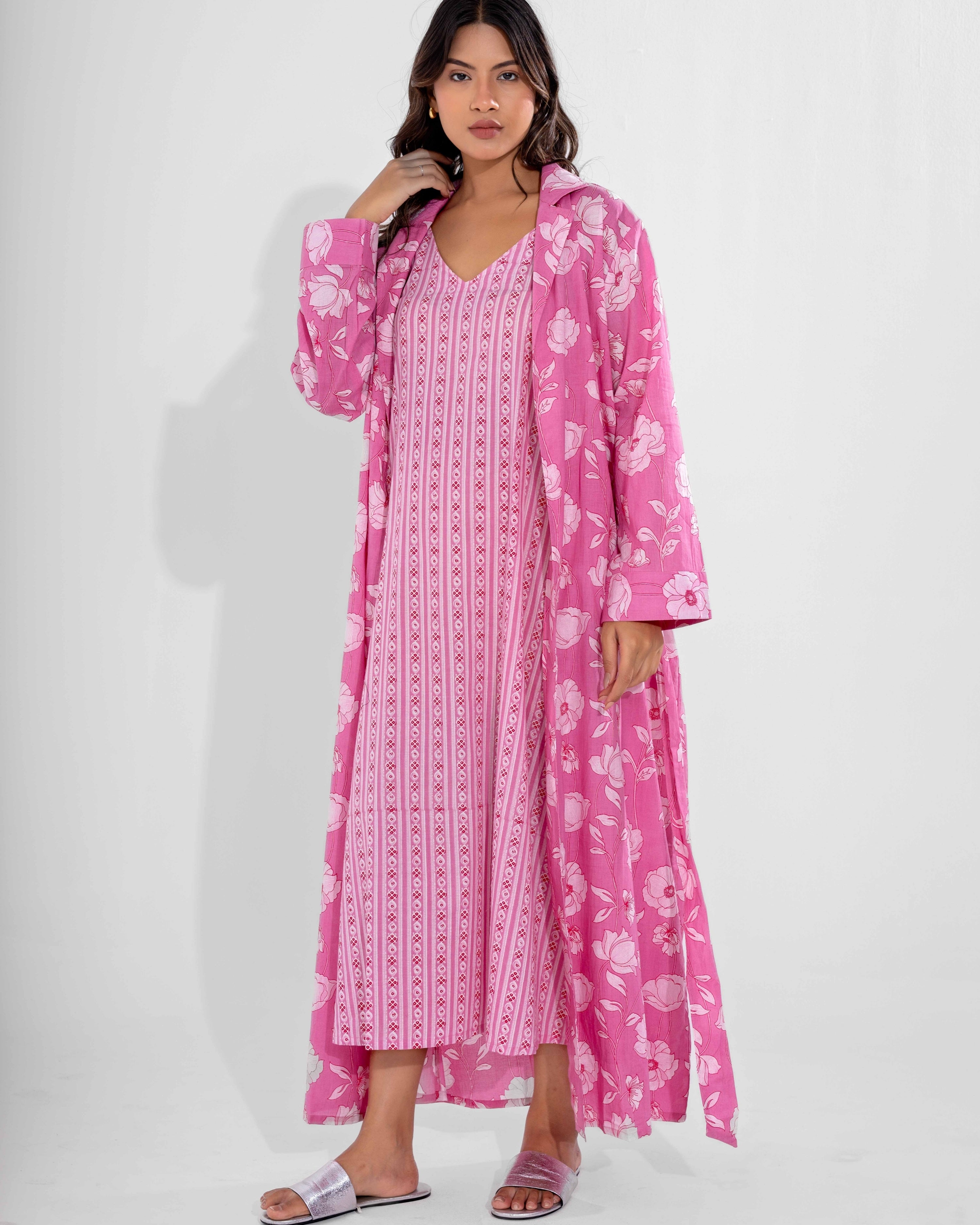 V neck Super Soft Dusty Pink woollen Lounge Wear Set