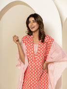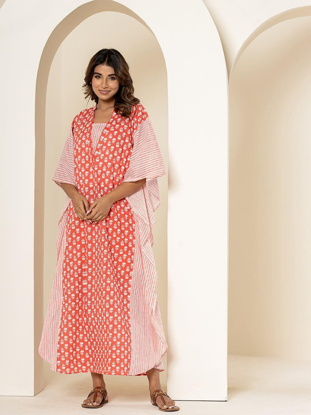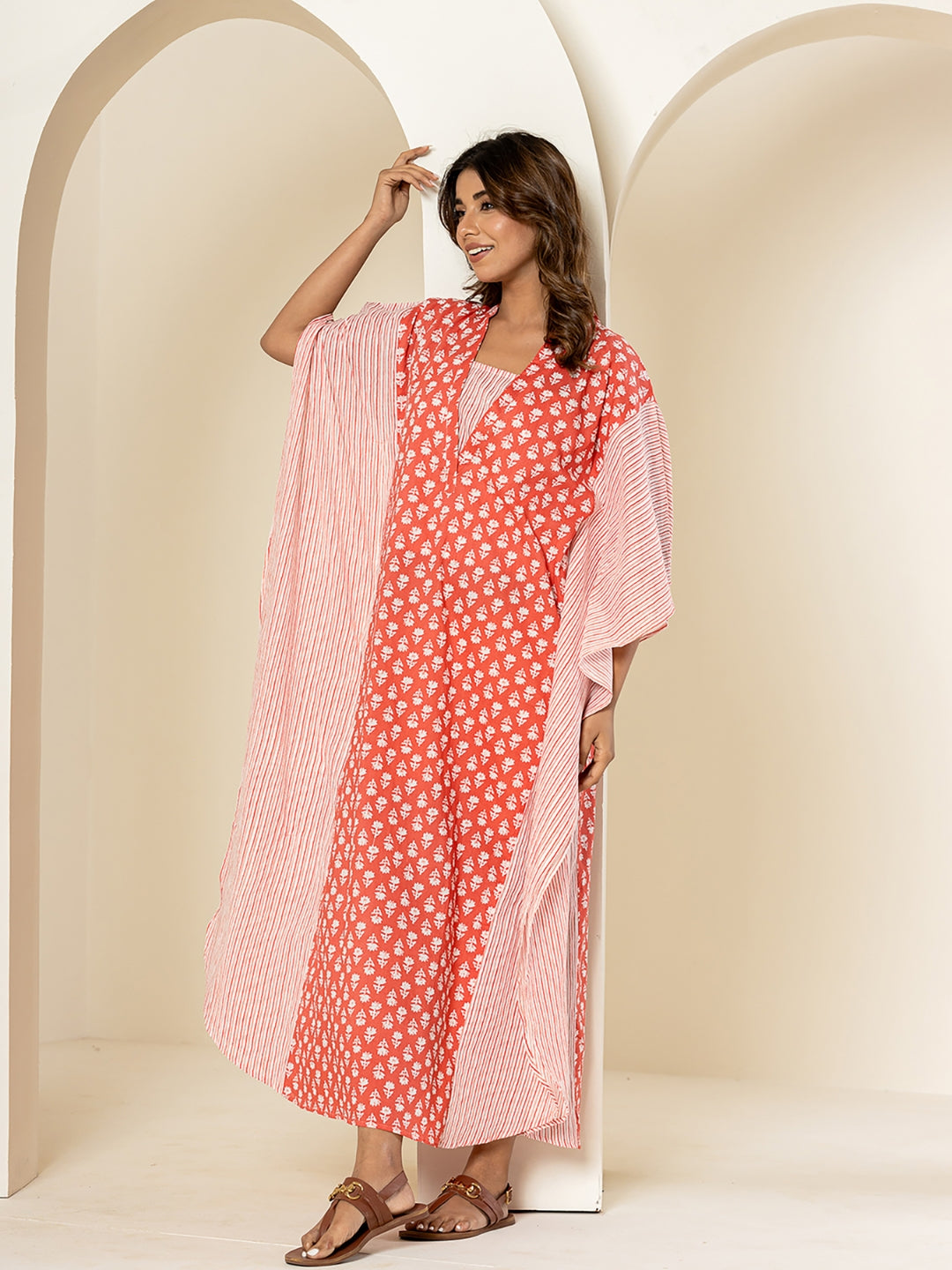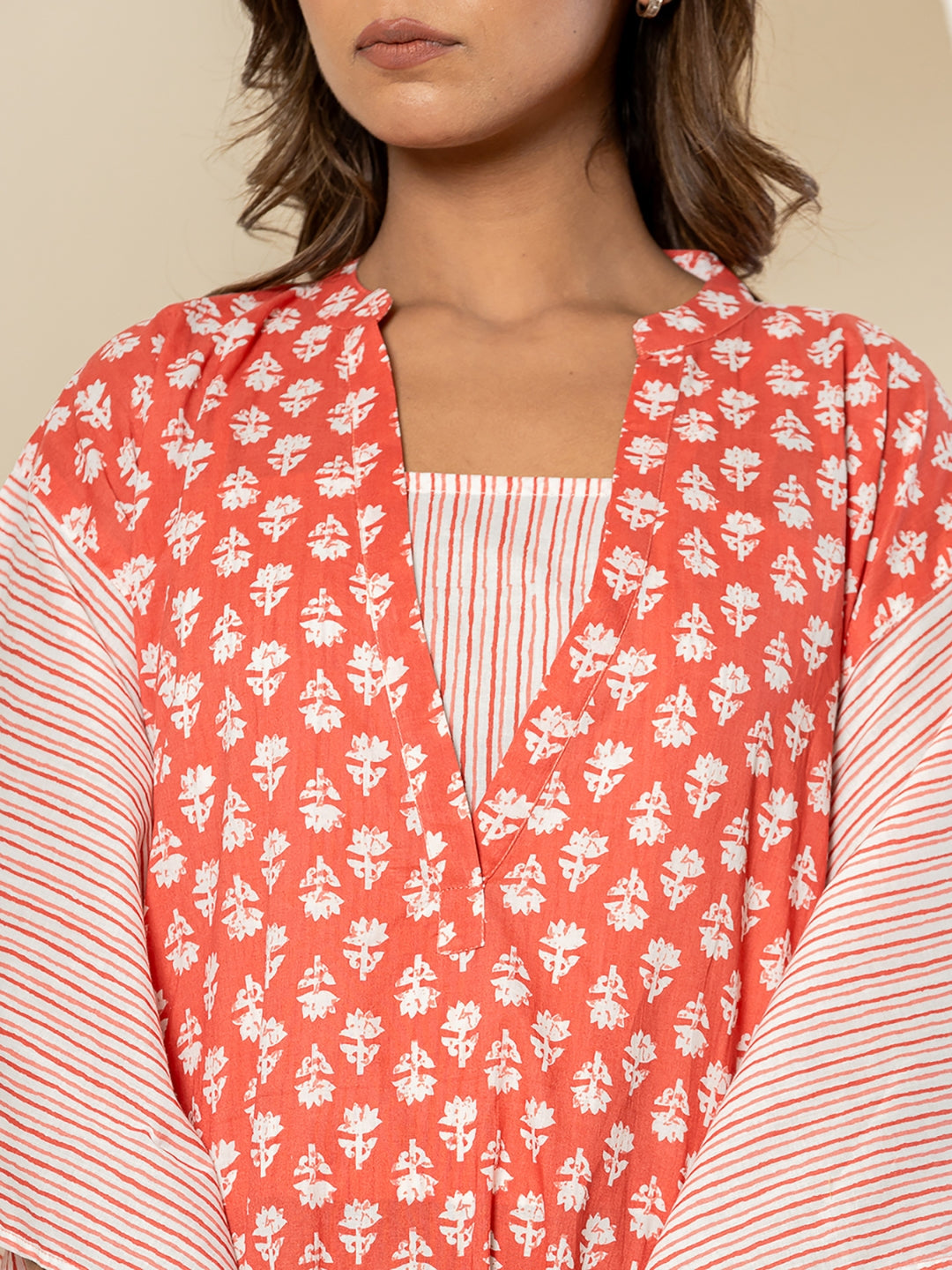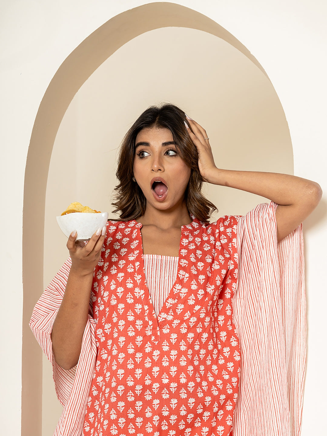 Apricot peachy block straps - 2 piece Pure Cotton Kaftan Set