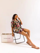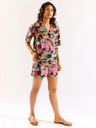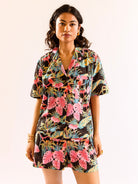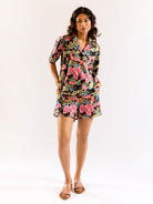 Black Botanic Bliss Pure Cotton Collar co-ord Shorts set