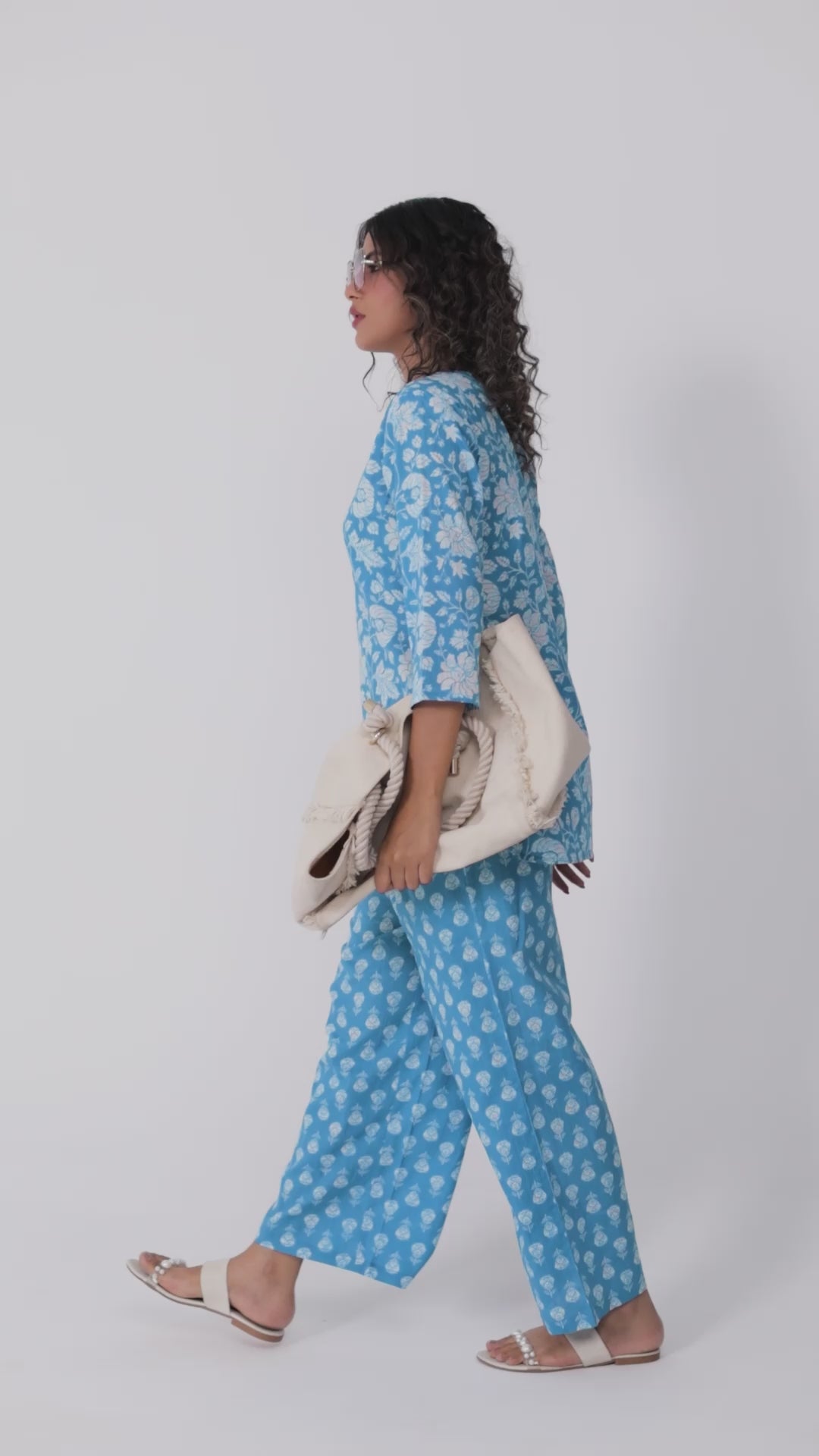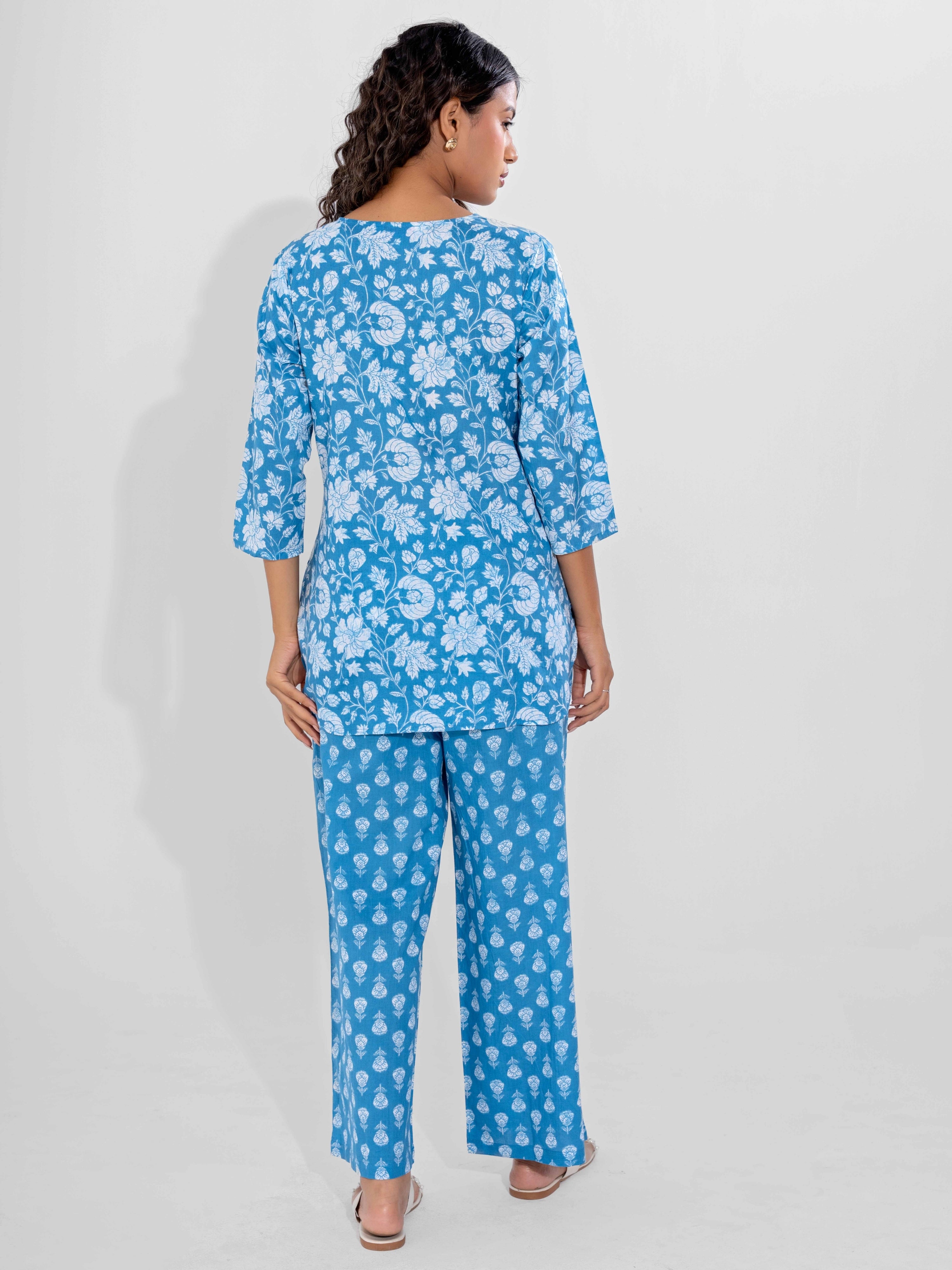 Blue Calm Pure Cotton Round Neck Co-ord Set
