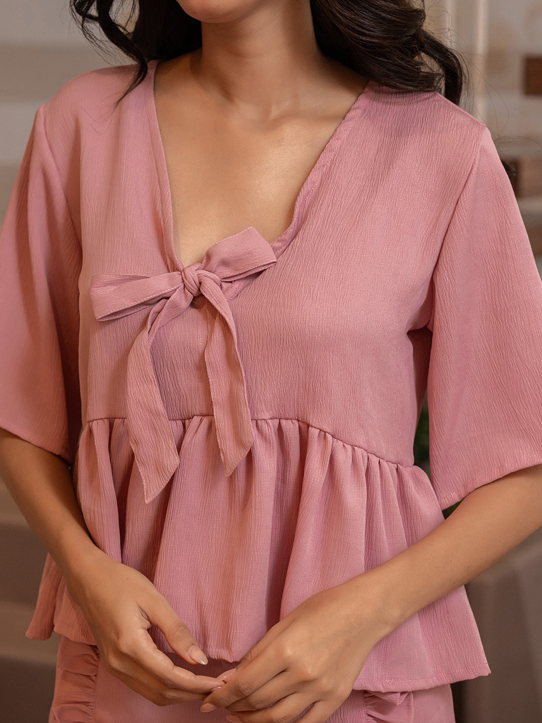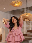 Light Blue Soft Crepe Sleeveless Top and Ruffle Shorts Co-Ord Set