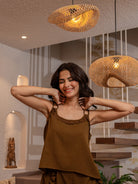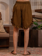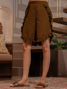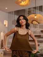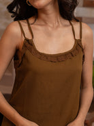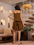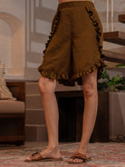 Russet Brown Soft Crepe Sleeveless Top and Ruffle Shorts Co-Ord Set