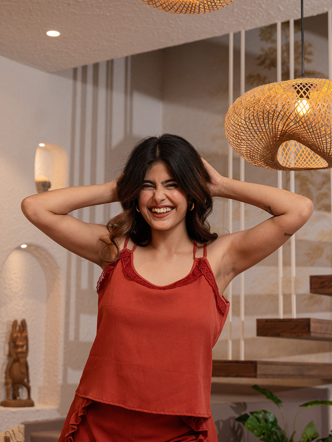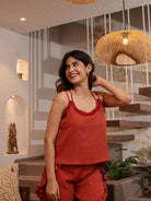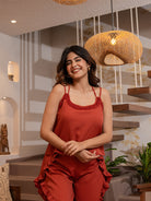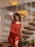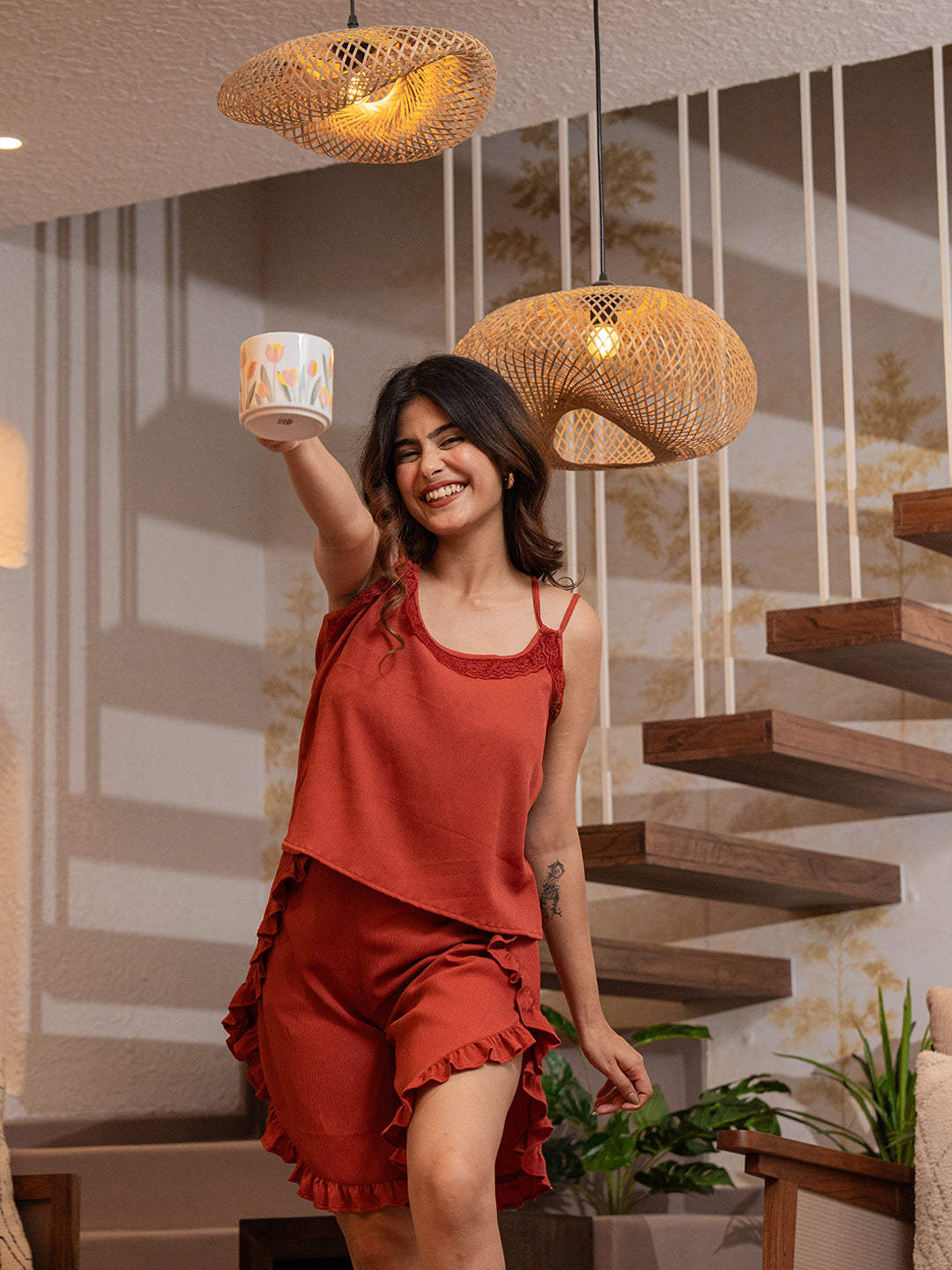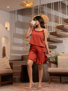 Light Blue Soft Crepe Sleeveless Top and Ruffle Shorts Co-Ord Set