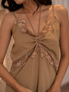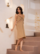 Introducing the ultimate in comfort and style, our Caramel Brown Soft Crepe Night Dress! Made from the softest crepe material, this night dress will make you feel as though you're sleeping on a cloud. With its beautiful caramel brown color, you'll be sure to have sweet dreams.