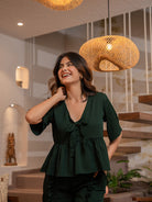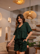 Emerald Green Soft Crepe Bow Top and Shorts Co-Ord Set