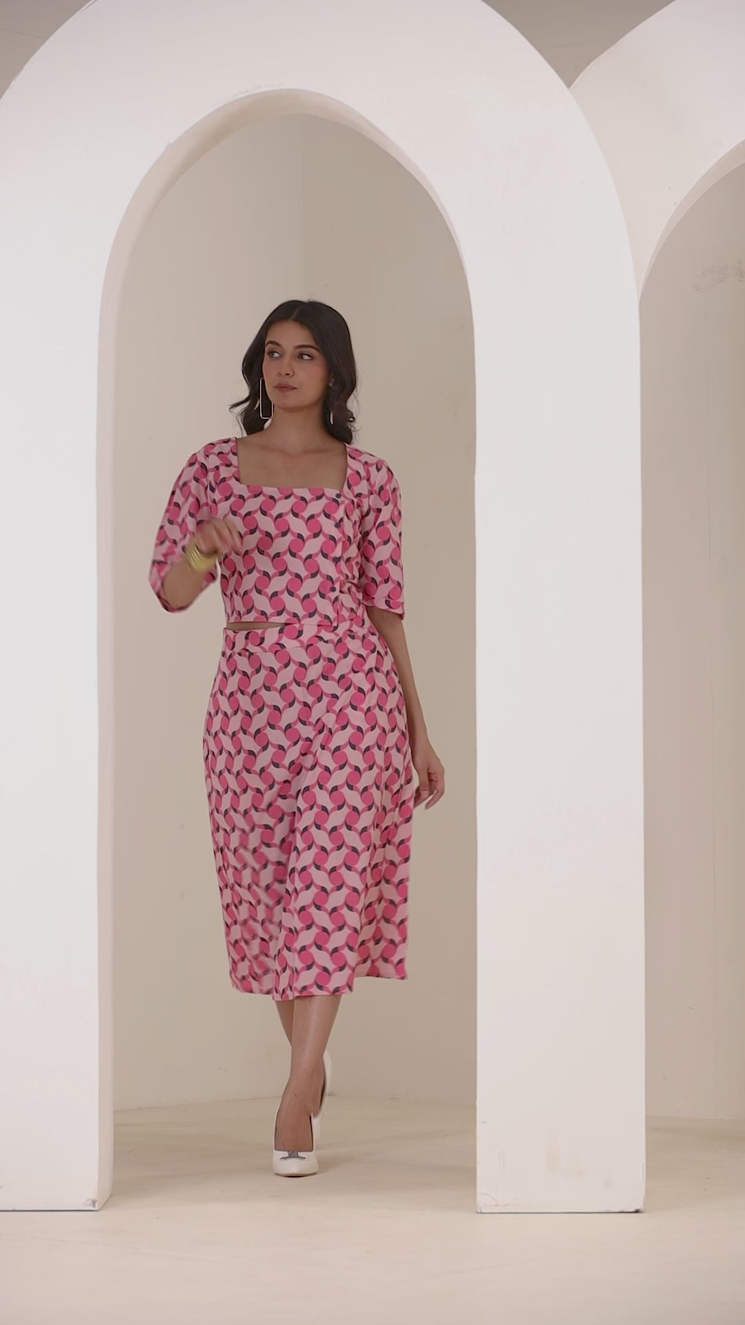 Geometrical Cherry Blossom Pink Midi Skirt Set