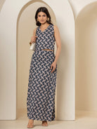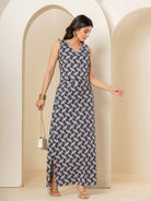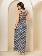 Blue Jaal Pure Cotton Tieup Square Neck Night Maxi
