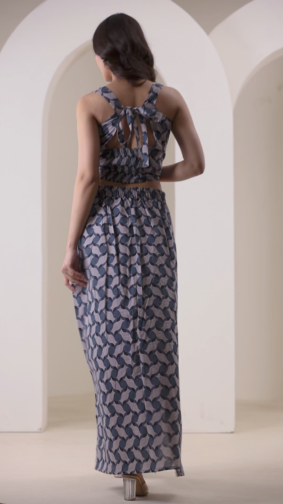 Light Blue Soft Crepe Sleeveless Top and Ruffle Shorts Co-Ord Set
