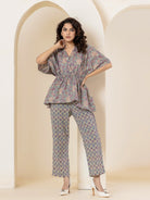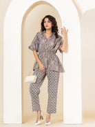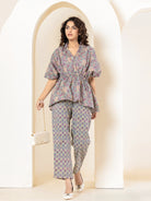 Blue Jaal Pure Cotton Tieup Square Neck Night Maxi