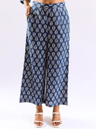 Get ready to flirt with fashion in our Indigo Floral Flirt Pure Cotton Back Pleated Co-ord set! Made with pure cotton, this round neck set features a playful indigo floral print that adds a touch of whimsy to your wardrobe. Perfect for a fun and flirty day out!