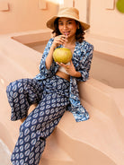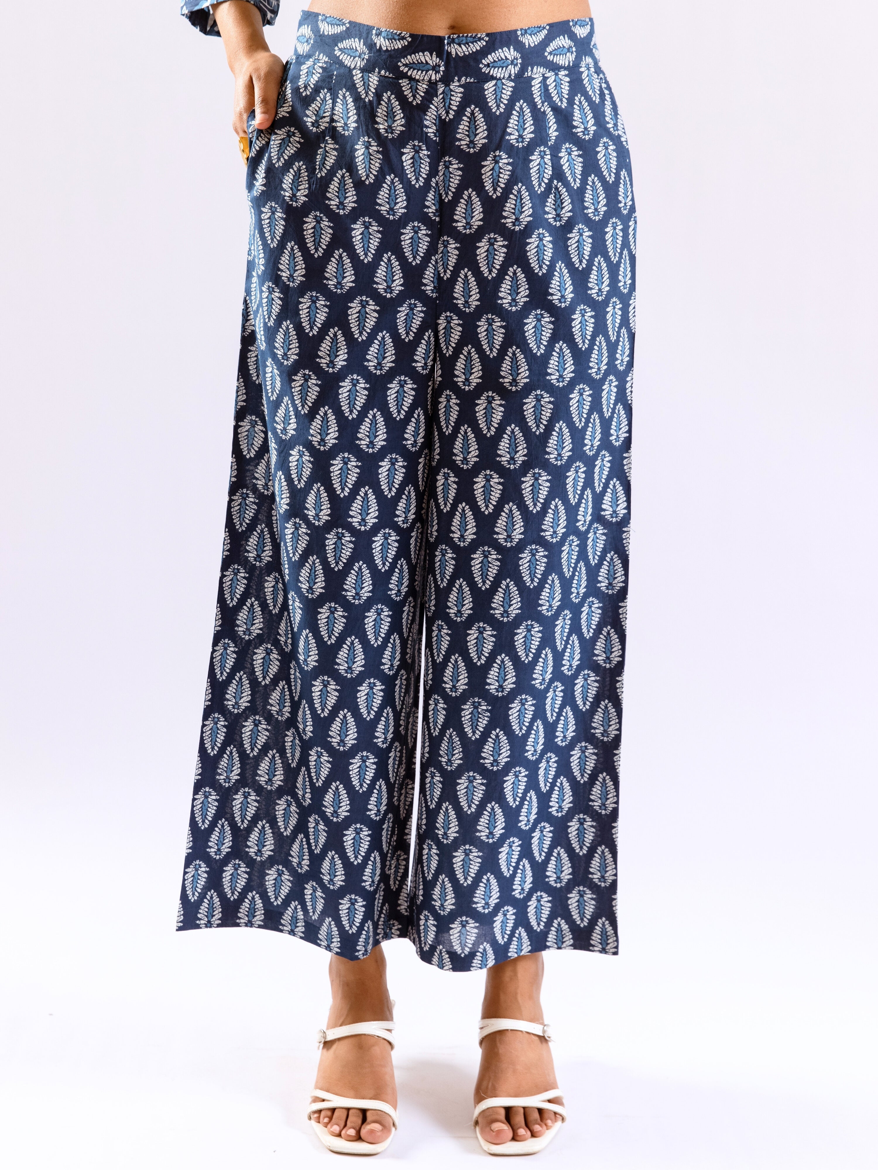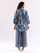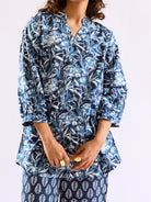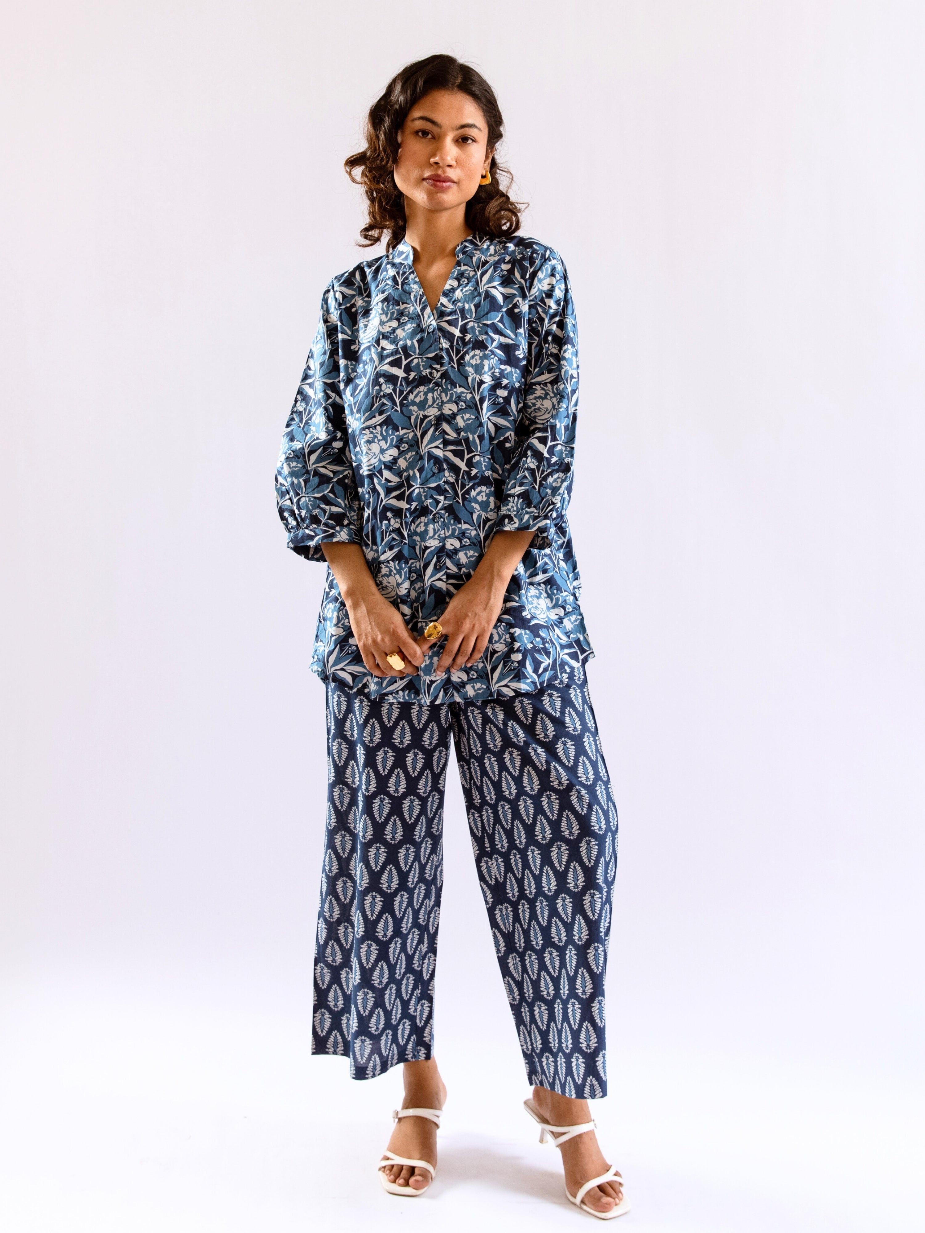 Indigo Floral Flirt Pure Cotton Back Pleated Co-ord set