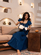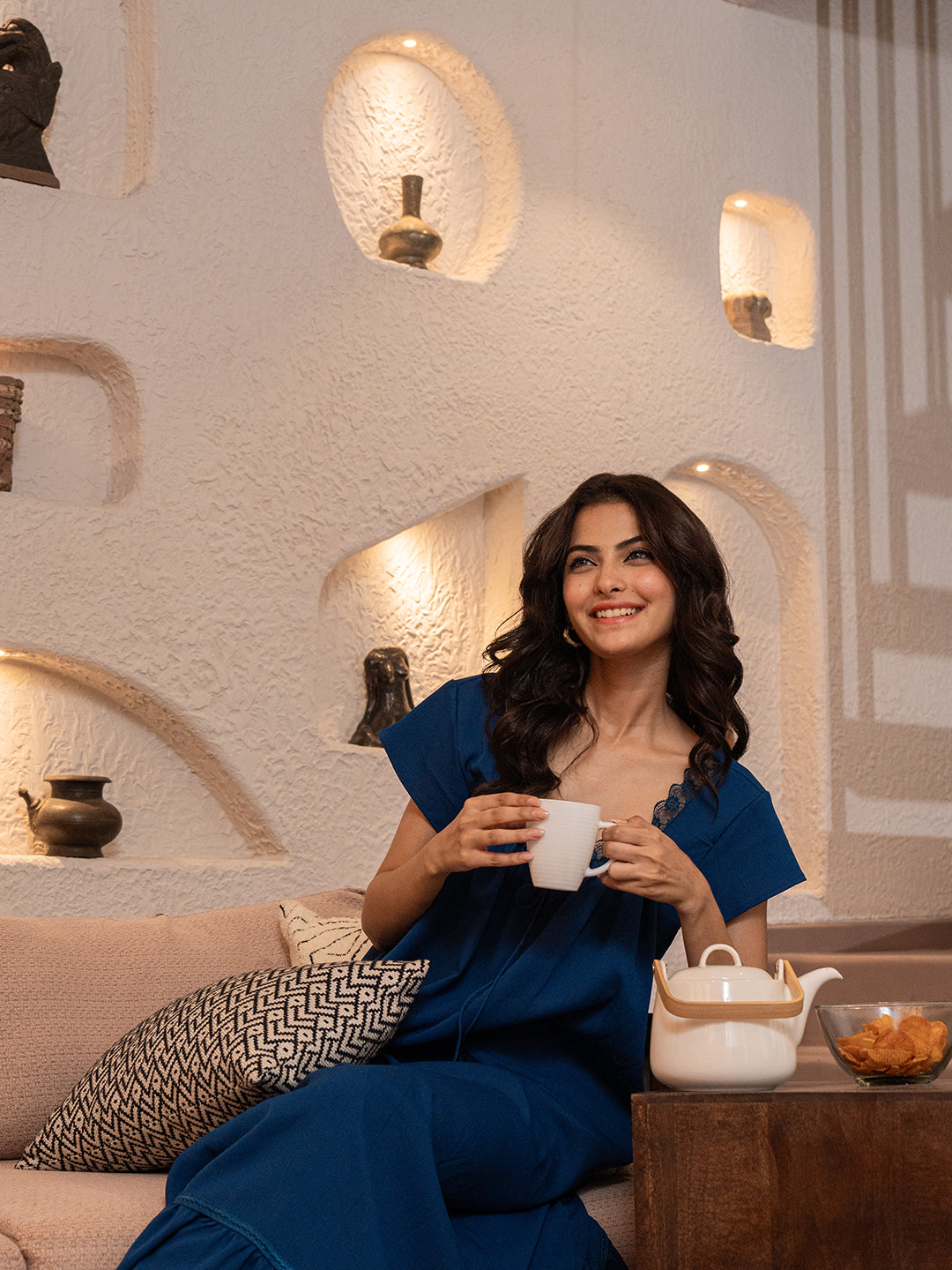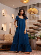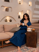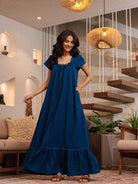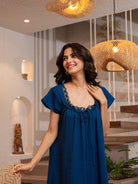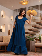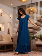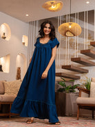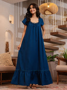 Blue Jaal Pure Cotton Tieup Square Neck Night Maxi