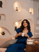 Midnight Blue Soft Crepe Shirt and Shorts Night Dress