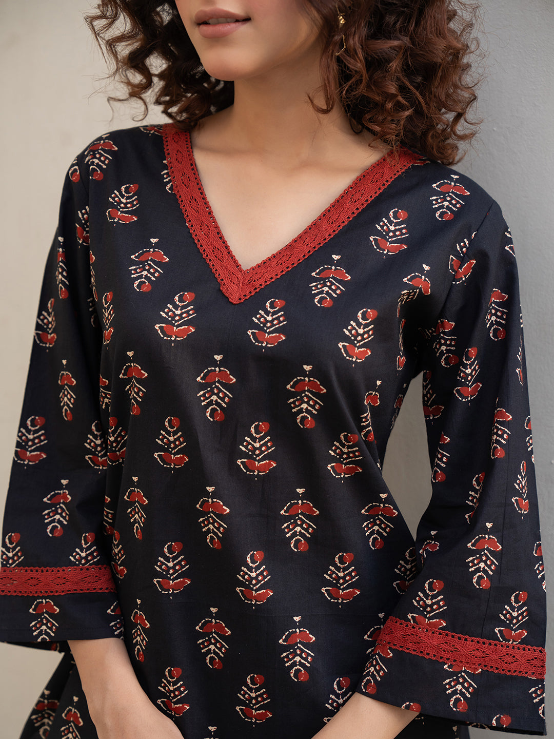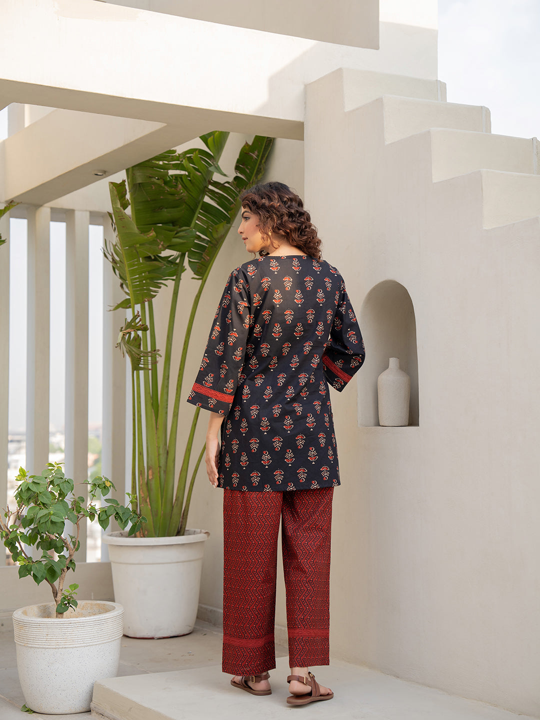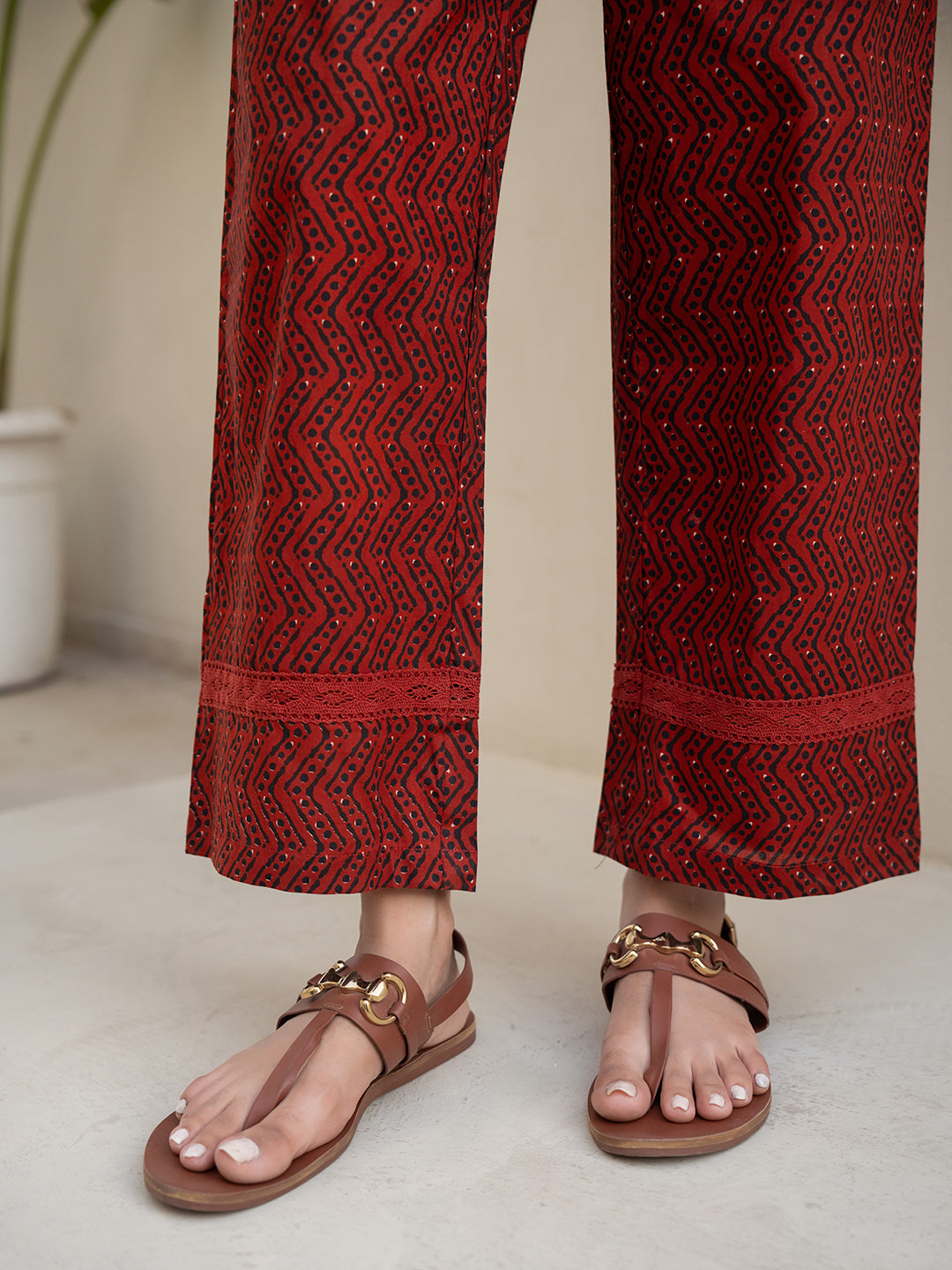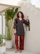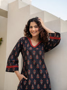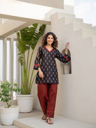 An ideal choice for your loungewear wardrobe, the Cotton Set comes in a soothing color palette. The hand block-printed pattern of the breezy Cotton top complements the matching Pants perfectly.