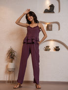 Be stylishly coordinated with this soft crepe sleeveless Co-Ord set in a playful plum purple shade. Perfect for any occasion, its comfortable and lightweight fabric will keep you looking and feeling cool all day (or night) long!