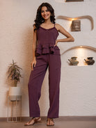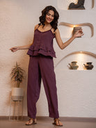 Plum Purple Soft Crepe Sleeveless Co-Ord Set