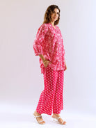 Pink Peony Chill Pure Cotton Back Pleated Co-ord set