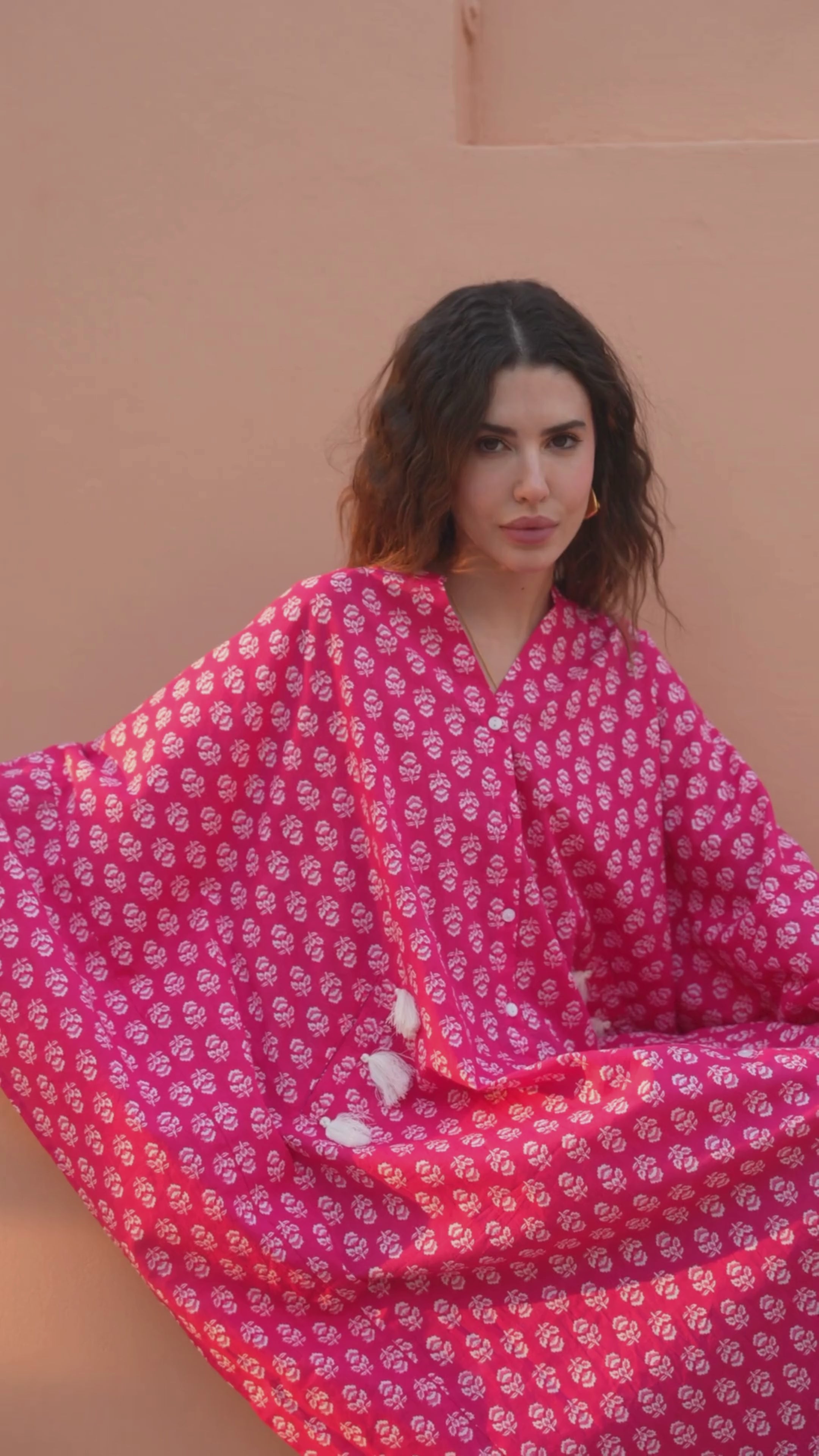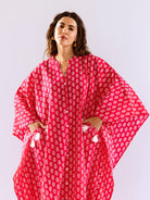 Pink Fantasy Flare Pure Cotton V neck Kaftan Dress