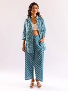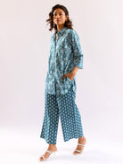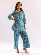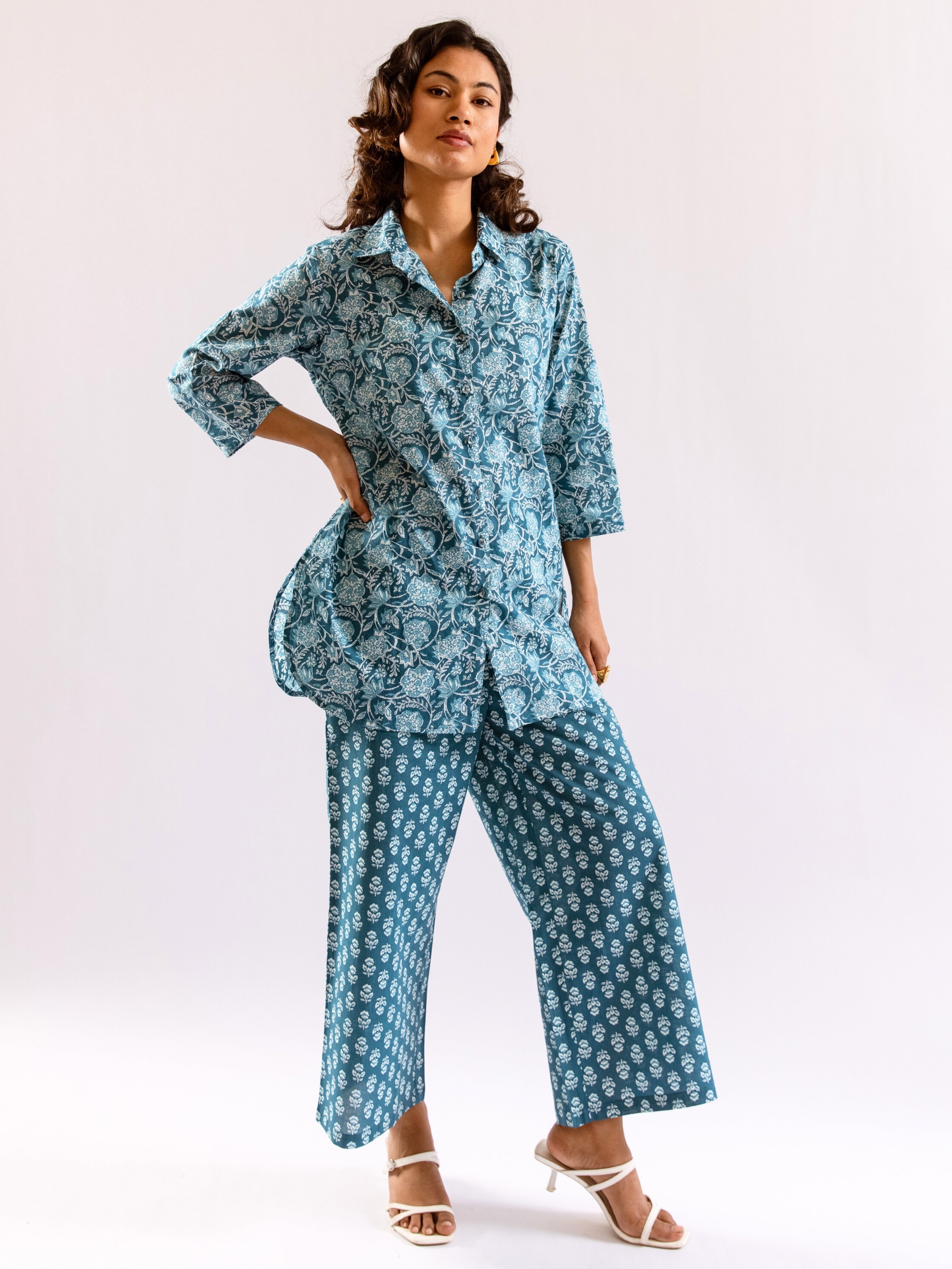Sea Blue Breeze Print Pure Cotton Collar Shirt Co-ord set