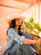 Blue Jaal Pure Cotton Tieup Square Neck Night Maxi