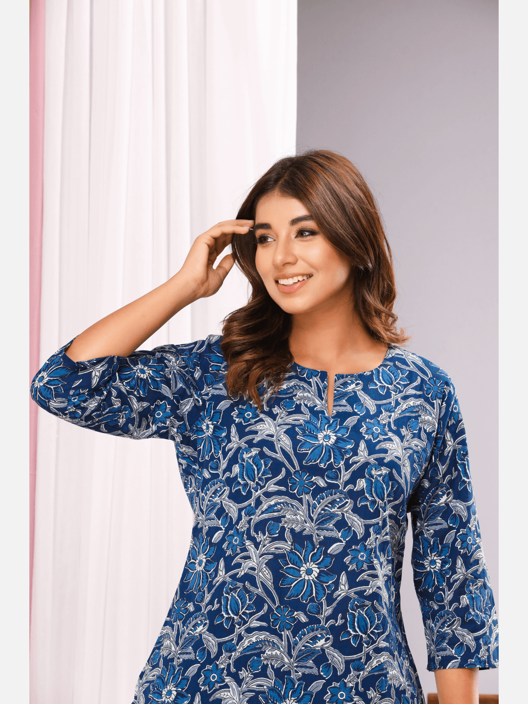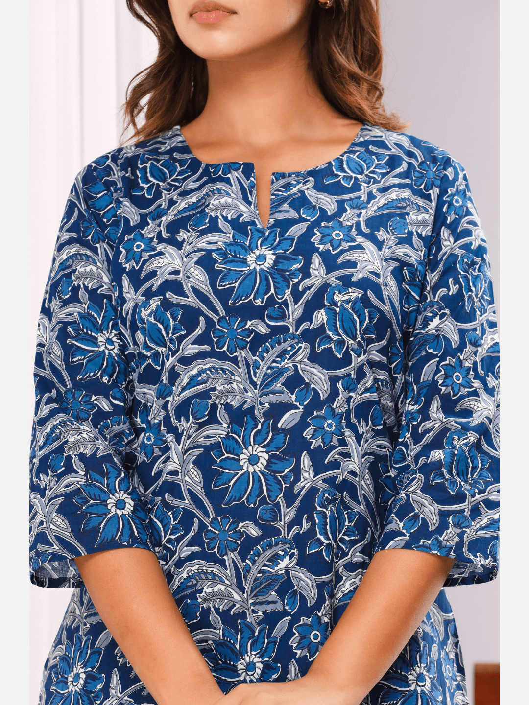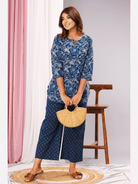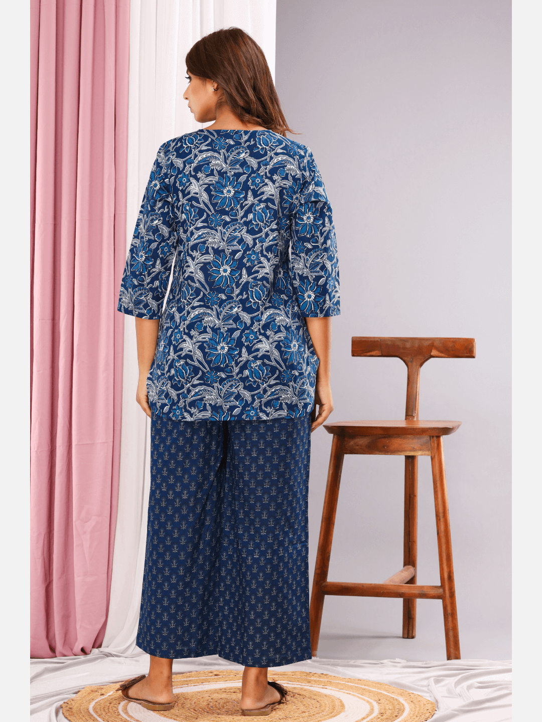 An ideal choice for your loungewear wardrobe, the Cotton Set comes in a soothing color palette. The hand block-printed pattern of the breezy Cotton top complements the matching Pants perfectly.