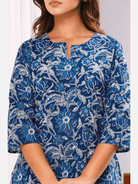 Blue Jaal Pure Cotton Tieup Square Neck Night Maxi