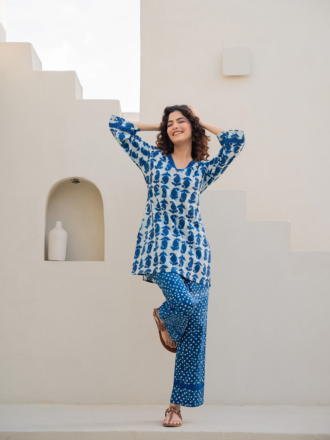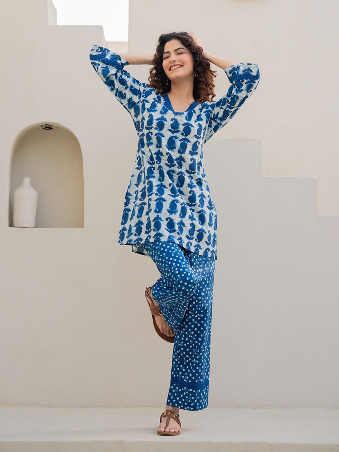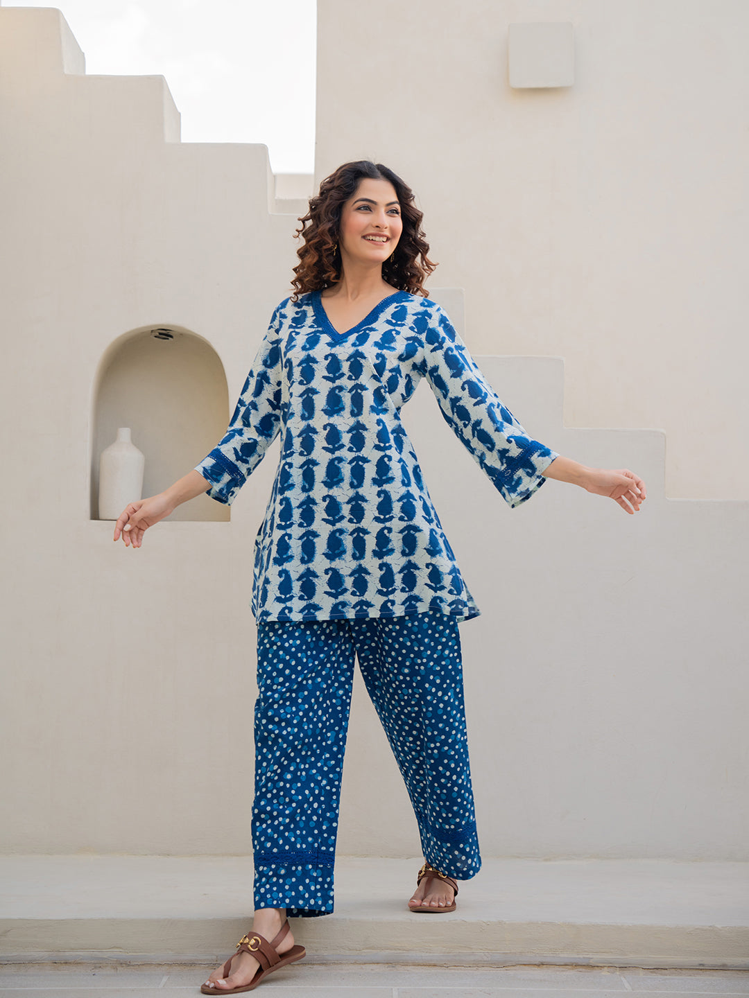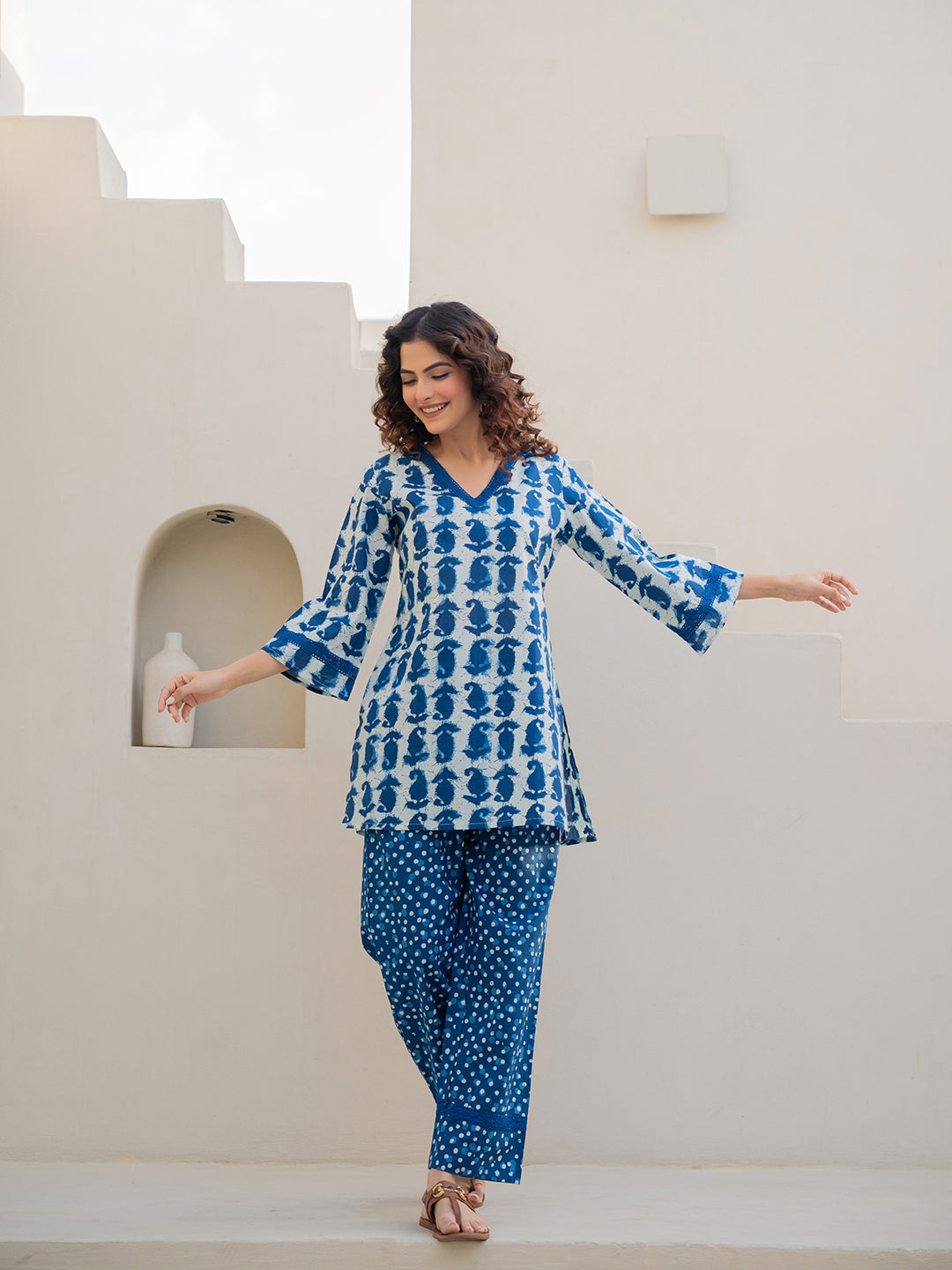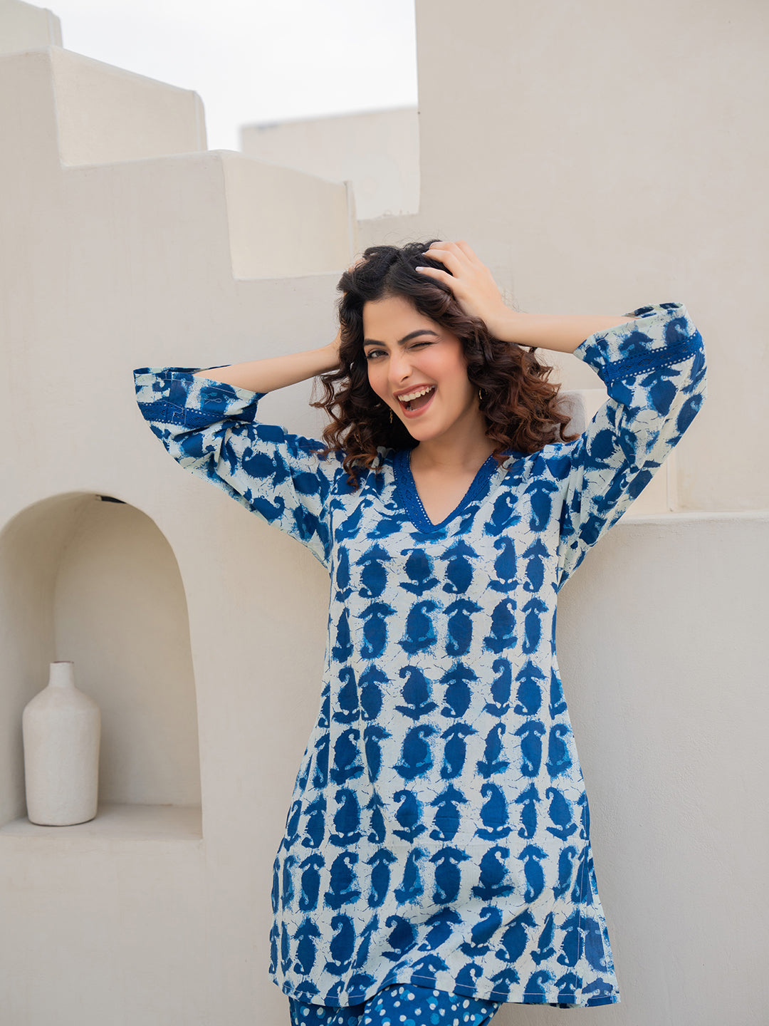 The company has done wonderful work by bringing nicely curated designs for night suits. The cost is also reasonable - but the quality of cotton can be increased.The cloth becomes somewhat transparent in sunlight/bright lights. The OVERALL DESIGNS and COMBINATION OF UPPER and LOWER PART OF DRESS is also great, therefore I hope, that company will take this feedback positively.