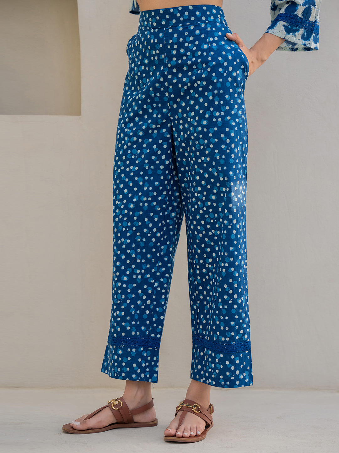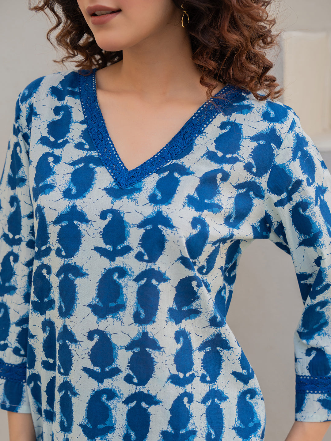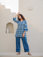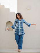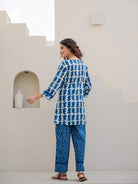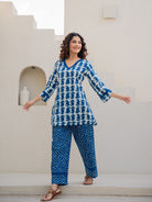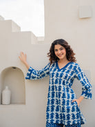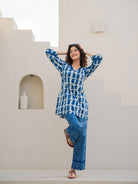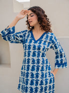 Blue Jaal Pure Cotton Tieup Square Neck Night Maxi