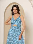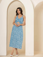Blue Jaal Pure Cotton Tieup Square Neck Night Maxi