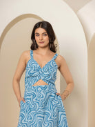 Sleeveless Collar Blue Cotton Set