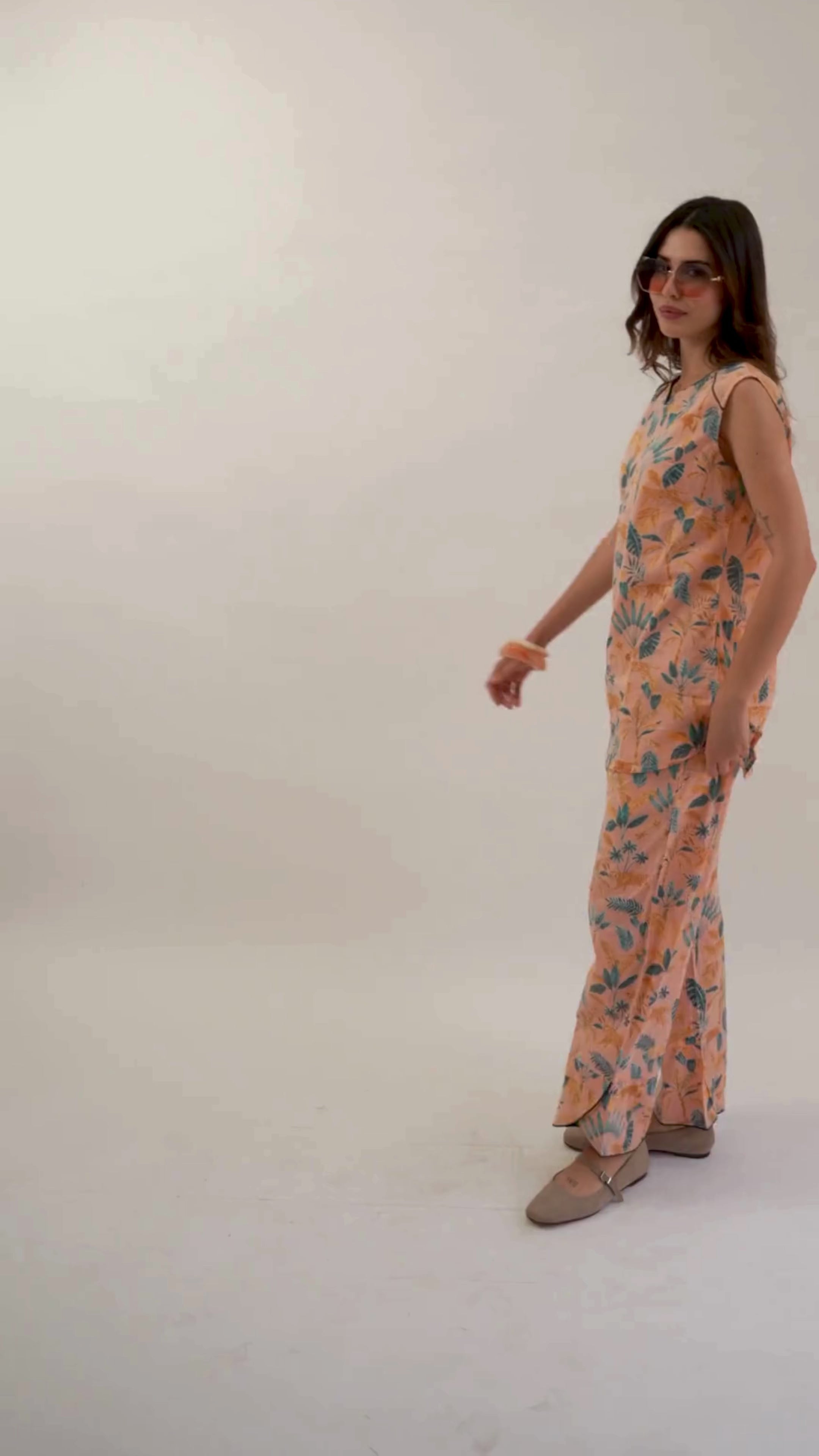 Tropical Apricot Peach Sleeveless Co-Ord Set