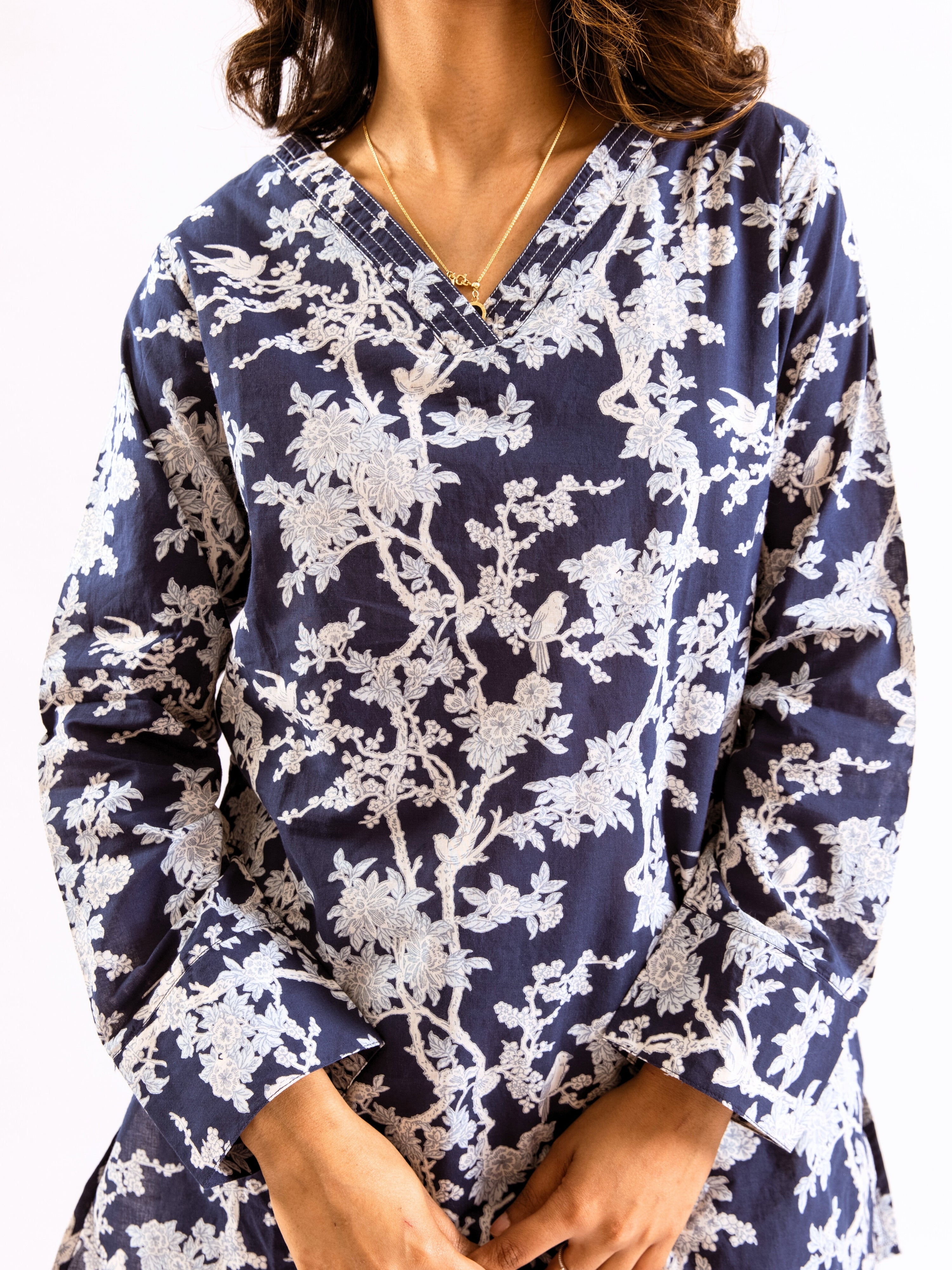 Tropical Deep Blue Jaal V-Neck Patiala Co-Ord Set