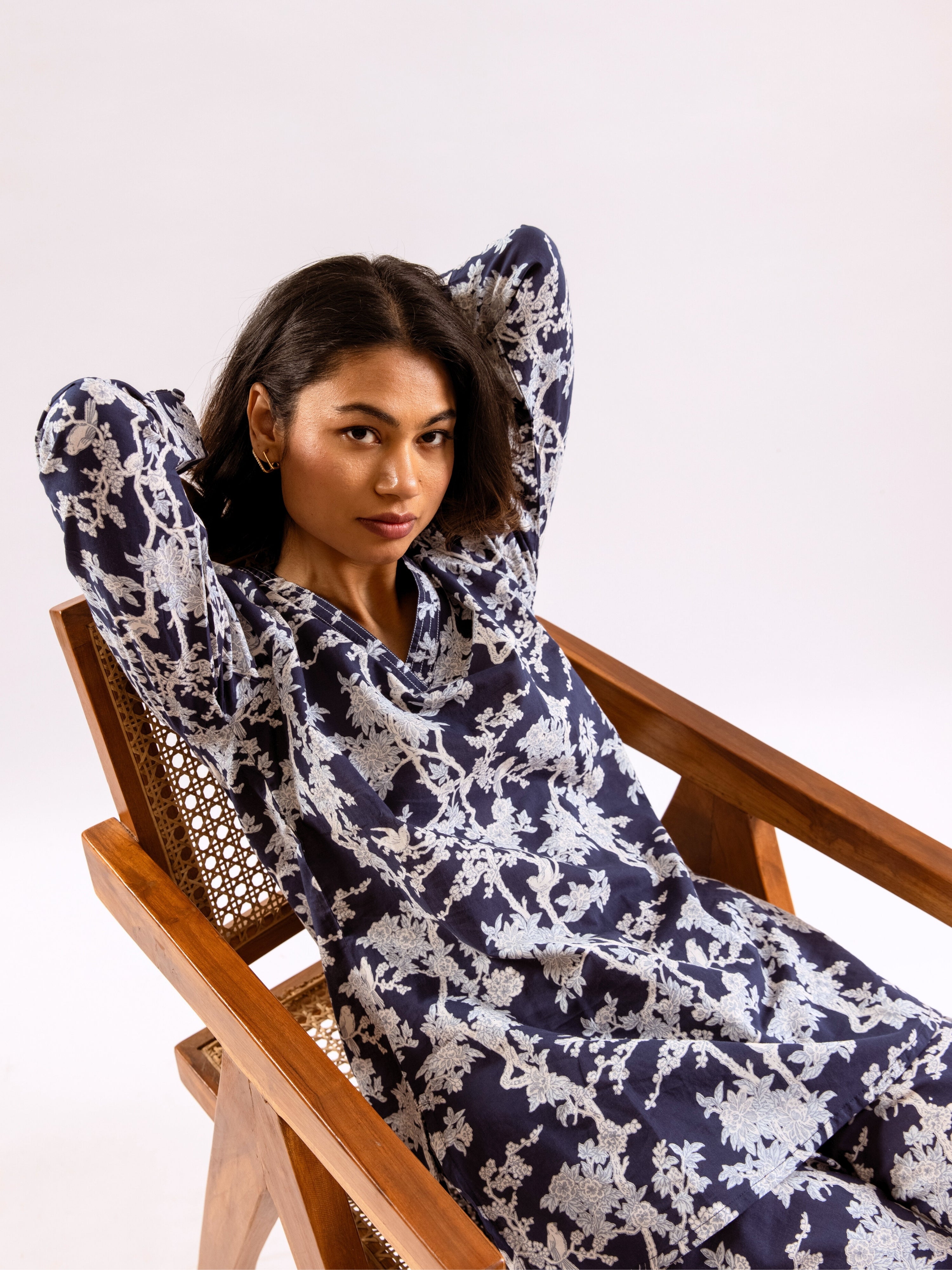 Blue Jaal Pure Cotton Tieup Square Neck Night Maxi