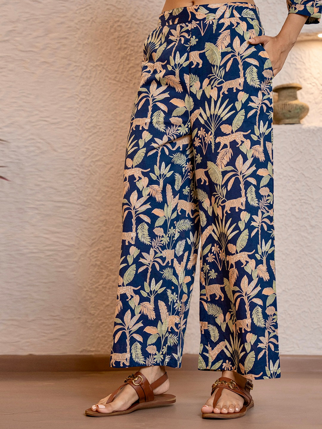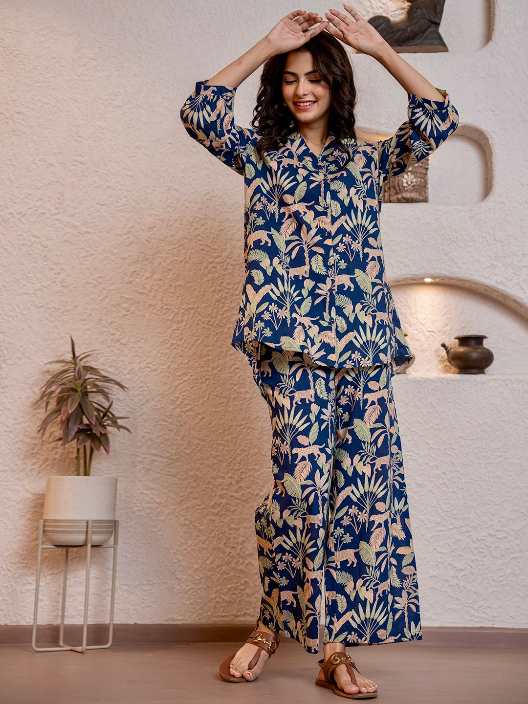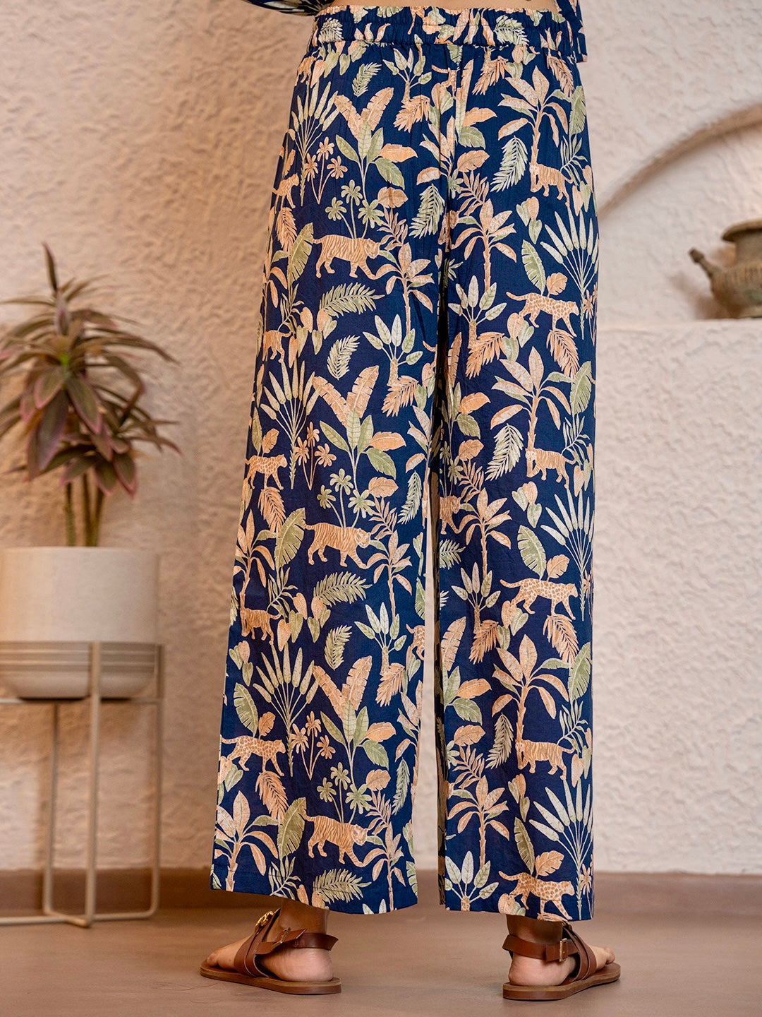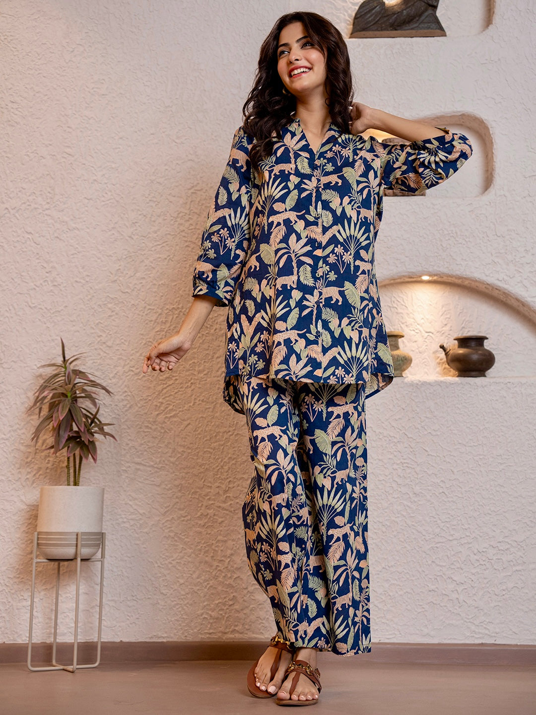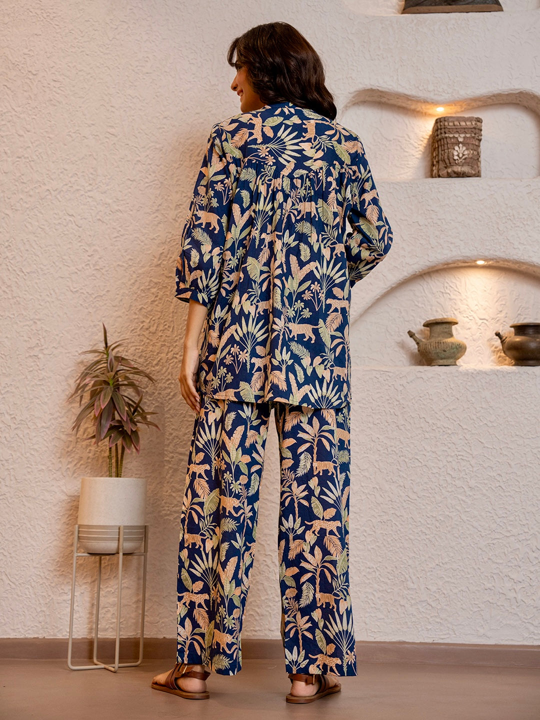 Tropical Navy Blue Pleated Back Co-Ord Set