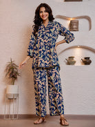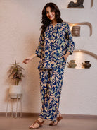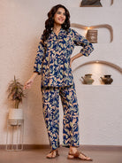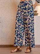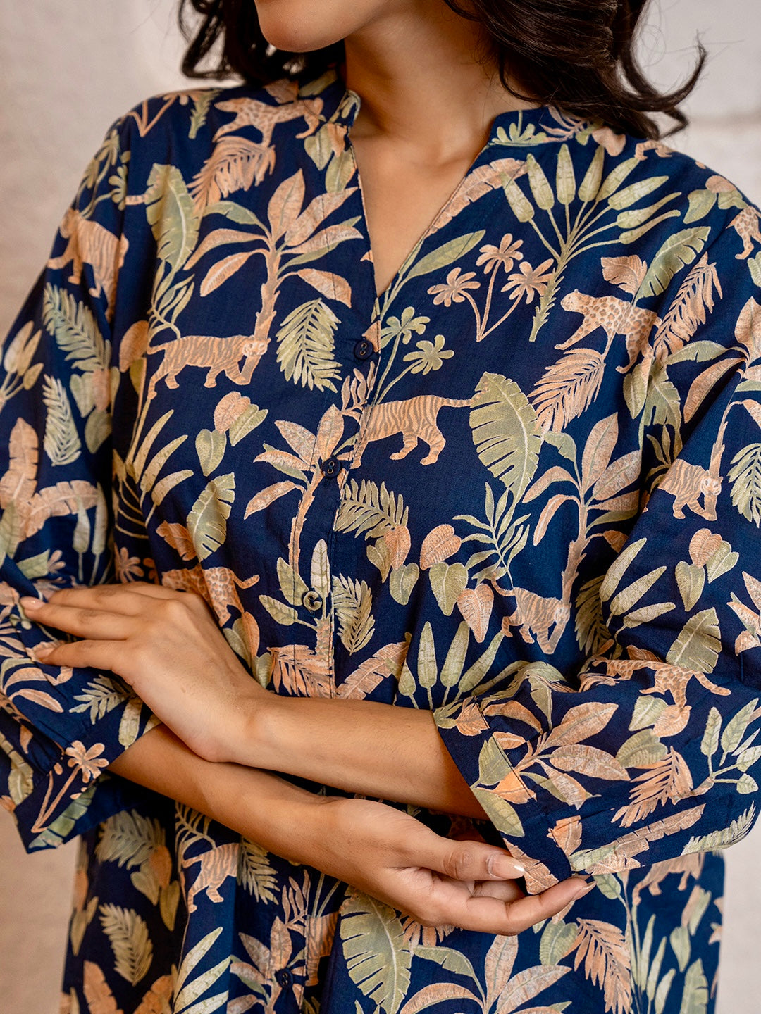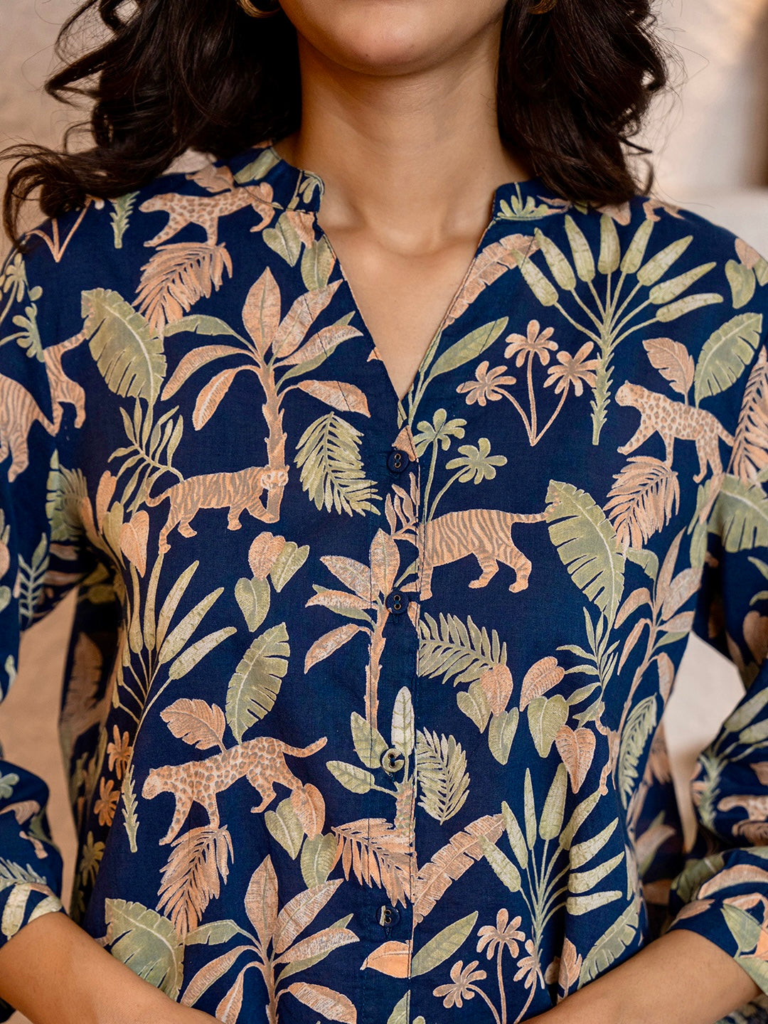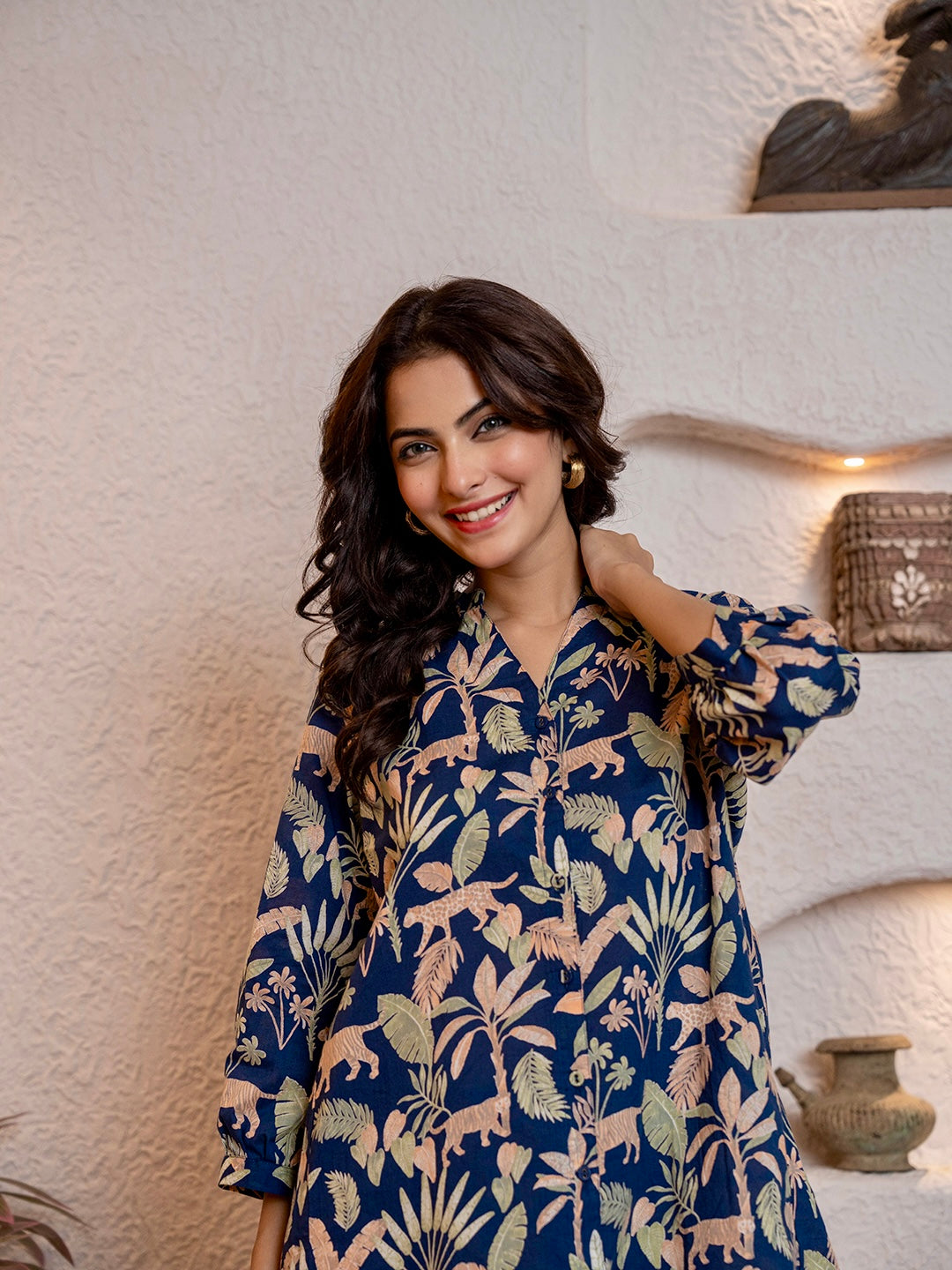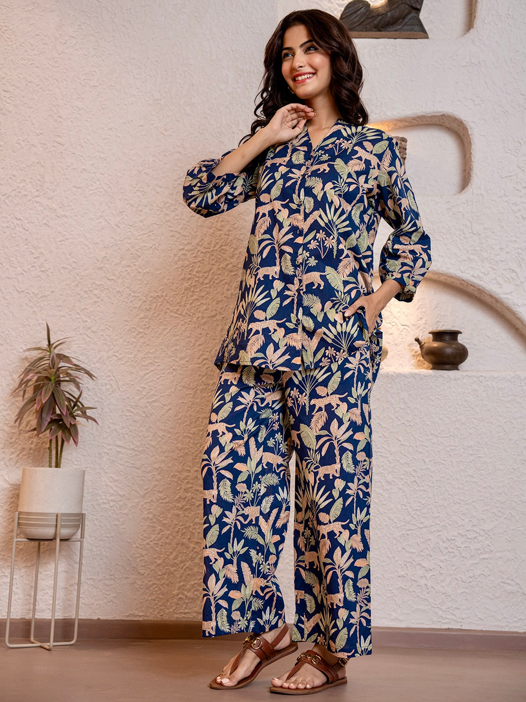 Tropical Navy Blue Pleated Back Co-Ord Set