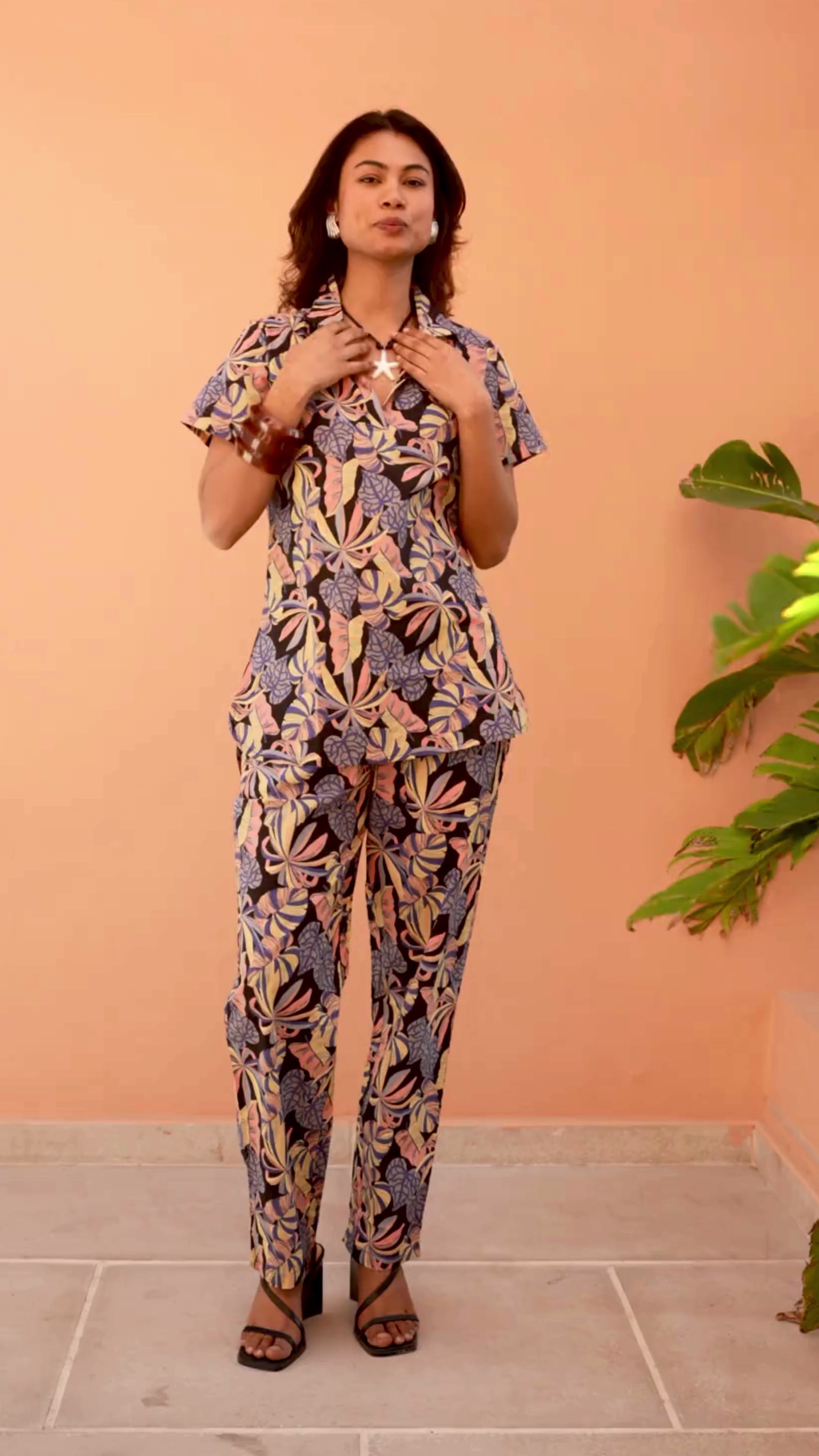 Tropical Noir Bloom Short Sleeve Co-Ord Set