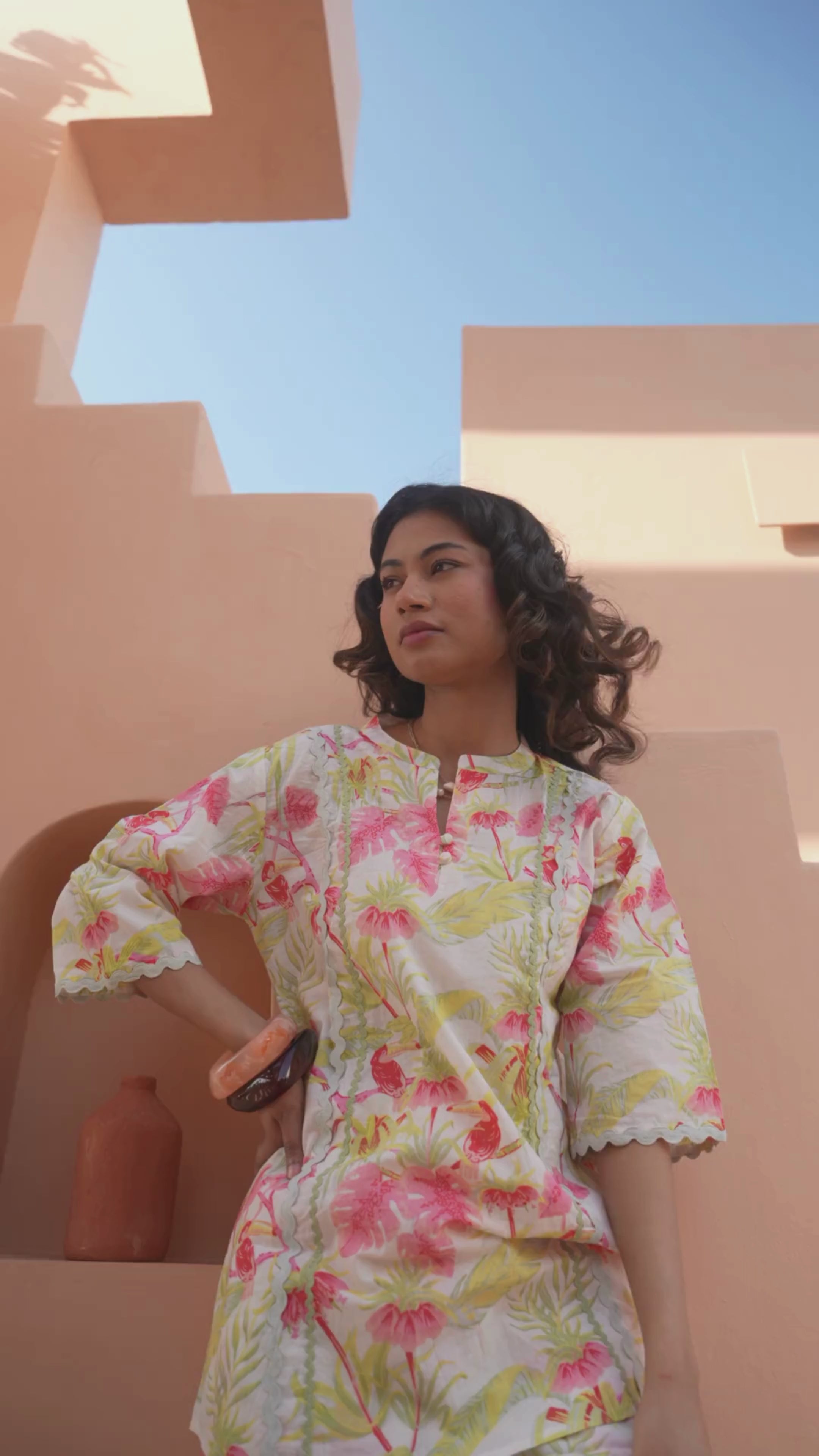 An ideal choice for your loungewear wardrobe, the Cotton Set comes in a soothing color palette. The hand block-printed pattern of the breezy Cotton top complements the matching Pants perfectly.